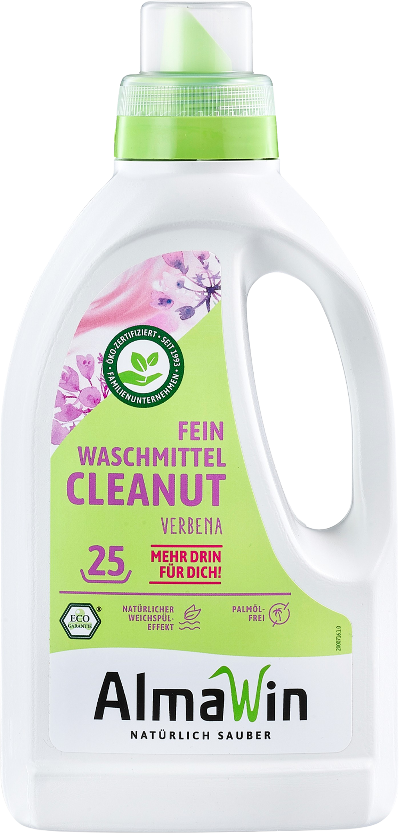 Detta flytande tvättmedel för färgade och ömtåliga textiler. Det rengör fibrerna skonsamt och har en mjukgörande effekt. Saponin från tvålmutterskal ersätter tensider från palmkärnolja.