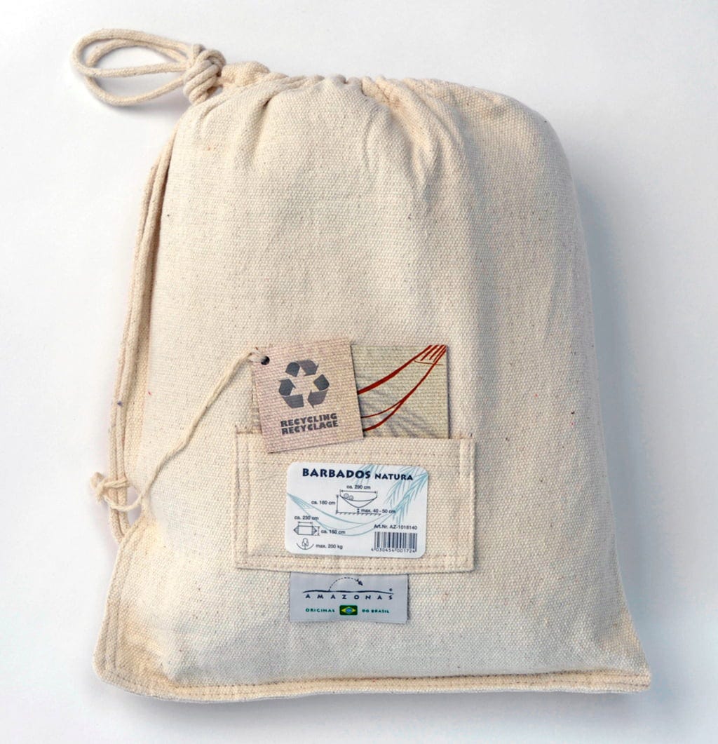 Det täta tyget på 400 g/m² klarar upp till 200 kg, så du kan till och med använda den tillsammans med någon. Handvävda och förstärkta öglor ger ett extra stabilt fäste för linorna och gör hängmattan hållbar i längden. Här kan du ligga bekvämt, slappna av och njuta av livet – gärna i äkta brasiliansk stil!