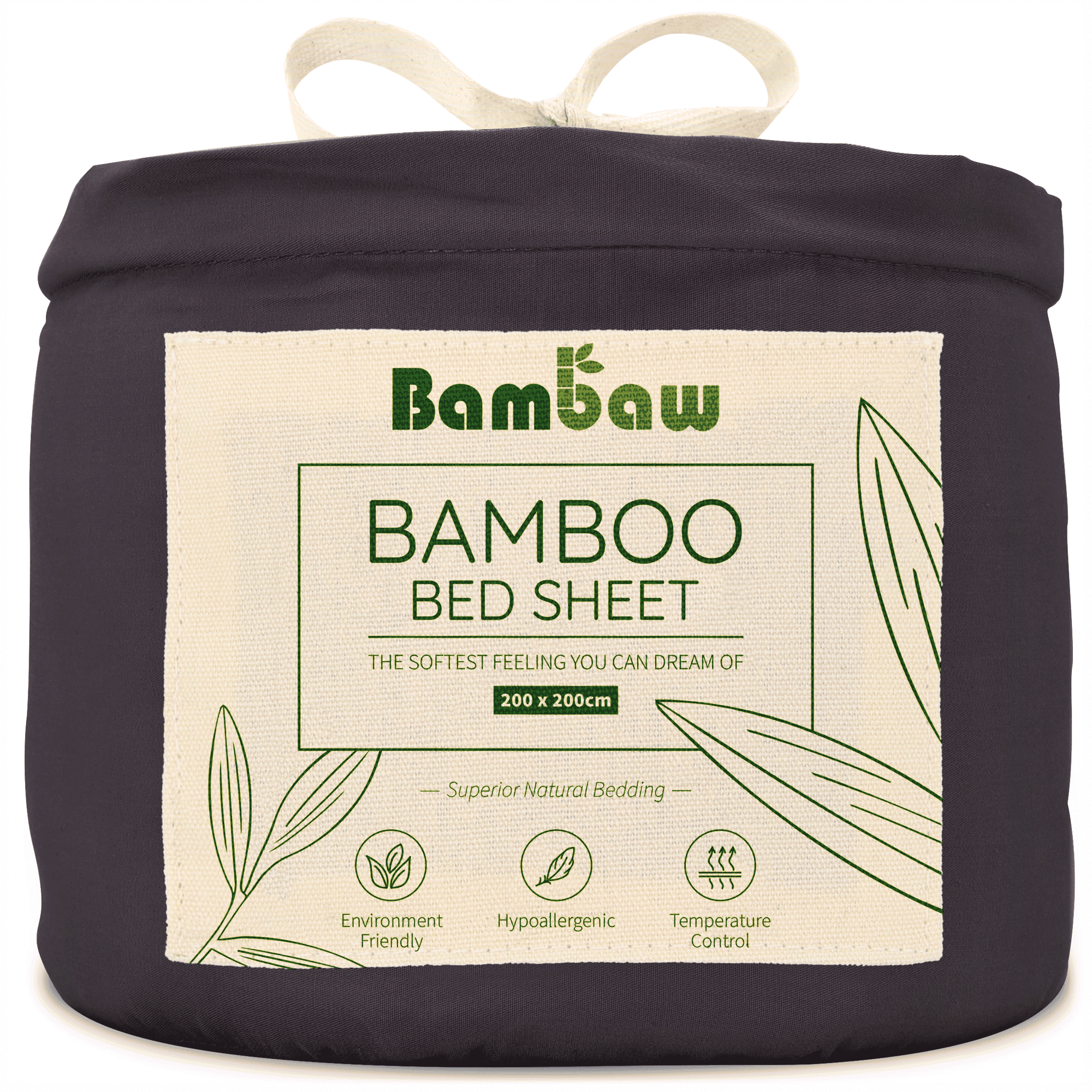 Bambaw Cozy Bambus Dra-På-Lakan 200x200 cm, Charcoal