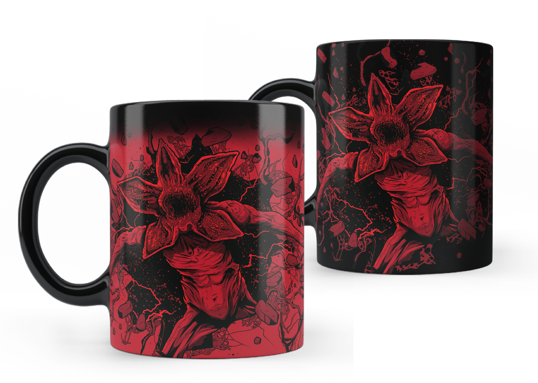 Unika, konstnärligt illustrerade 3D-grafiker i Stranger Things-stil gör dessa kaffemuggar i högkvalitativt porslin till ett riktigt blickfång under varje paus. Extra effektfulla blir de när de fylls med varm dryck – då skiftar de färg till rött som genom magi.
