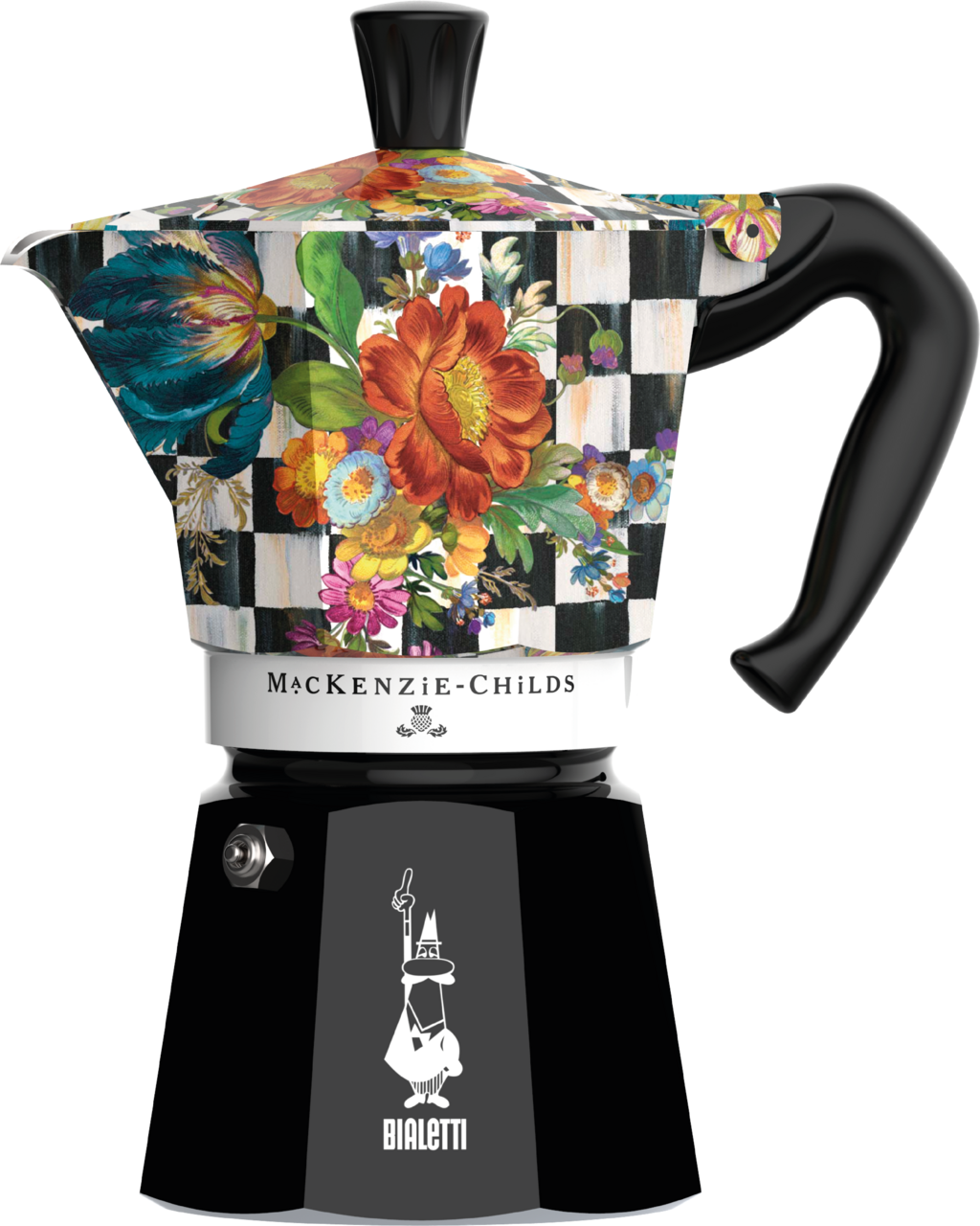 Upplev en ny tolkning av den italienska kaffetraditionen! Samarbetet mellan Bialetti och MacKenzie-Childs ger inte bara perfekt espressonjutning, utan också ett stycke designkonst i ditt kök. Den ikoniska Moka Express möter de lekfulla, eleganta mönstren från MacKenzie-Childs - varje del är en liten one-off med en speciell charm.