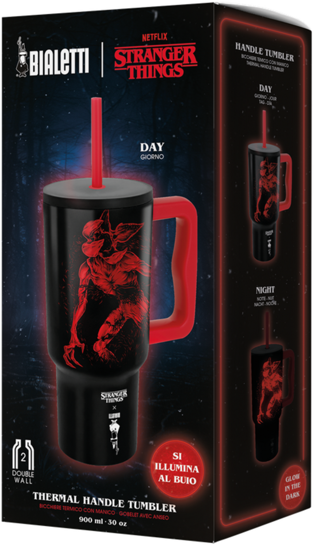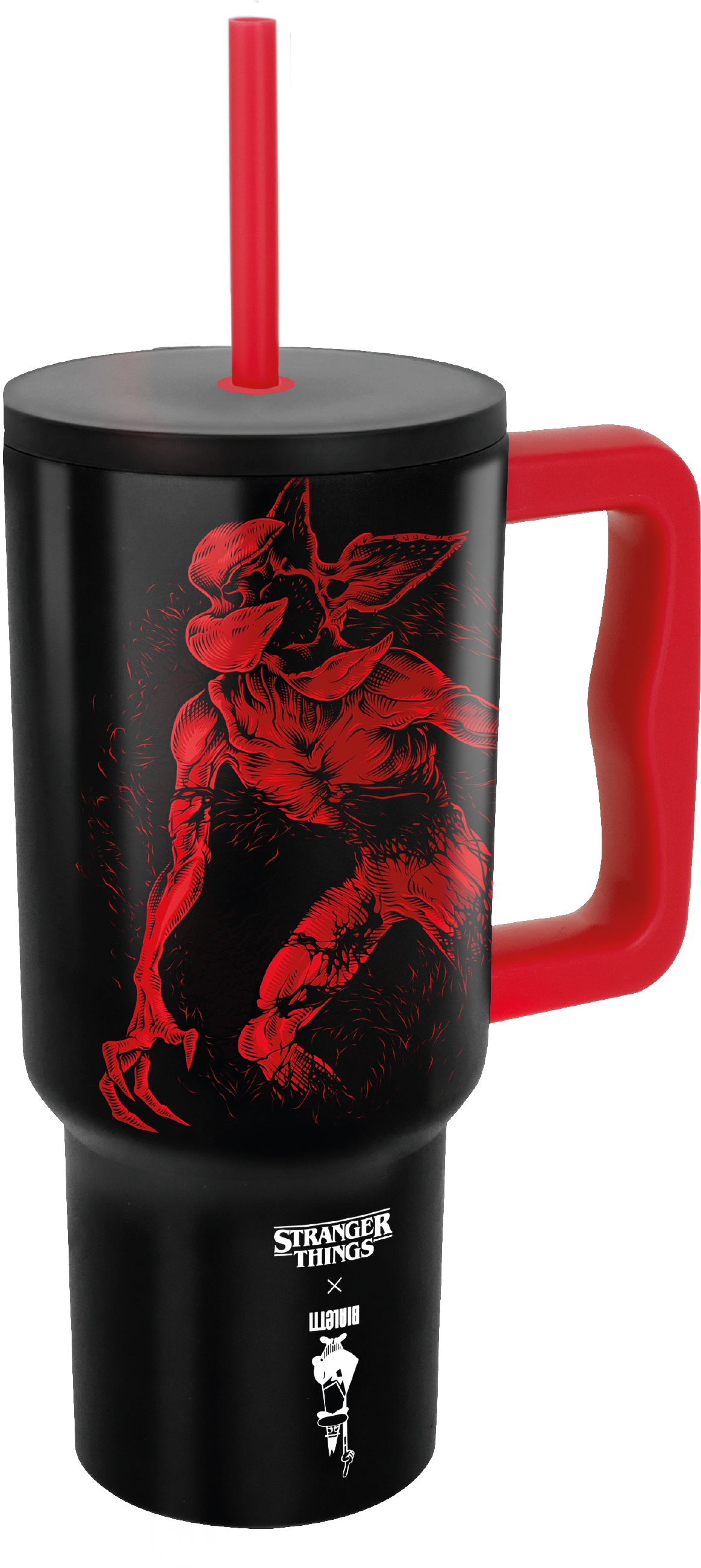 Exklusivt illustrerade 3D-grafiker i Stranger Things-stil gör denna stilrena tumbler till den perfekta följeslagaren hela dagen.