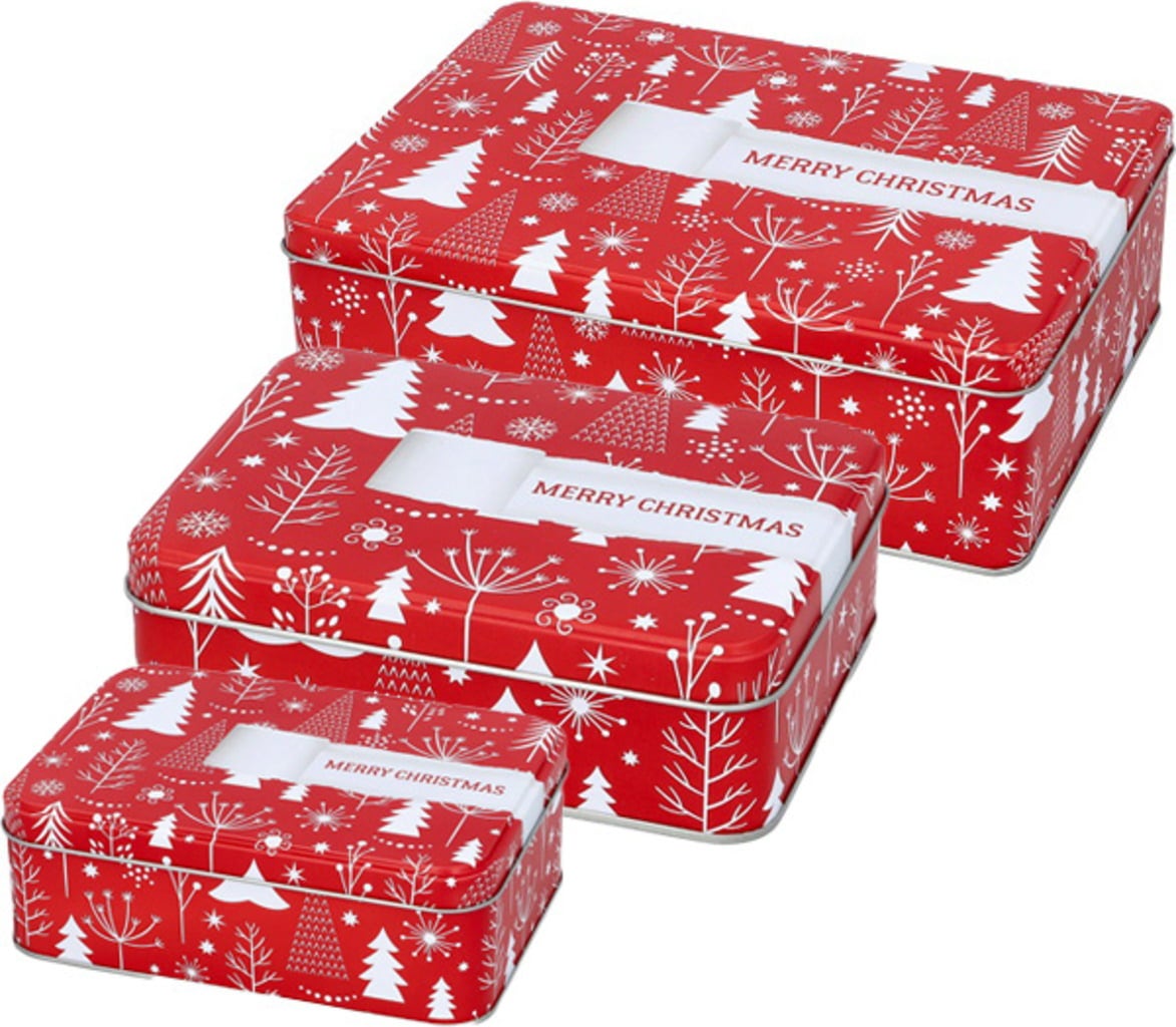 Burkarna är tillverkade av högkvalitativ, rostskyddad plåt och imponerar med sin festliga design och praktiska form. De kan staplas för att spara utrymme och förblir förseglade under lång tid tack vare det perfekt passande locket - perfekt för förvaring, som gåva eller för att dekorera med stil under adventstiden.