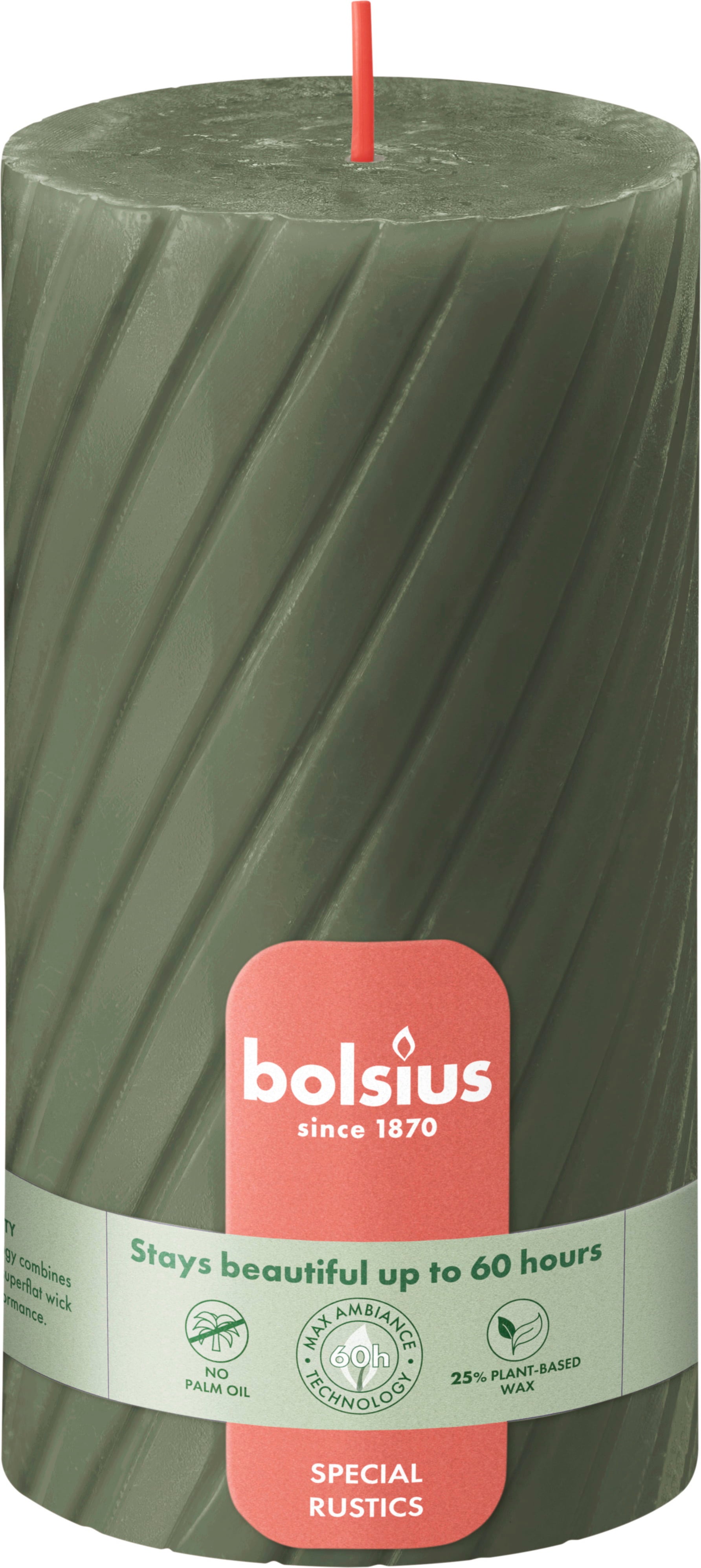 bolsius Rustikblockljus Räfflad 13/6,8 cm, Färsk oliv