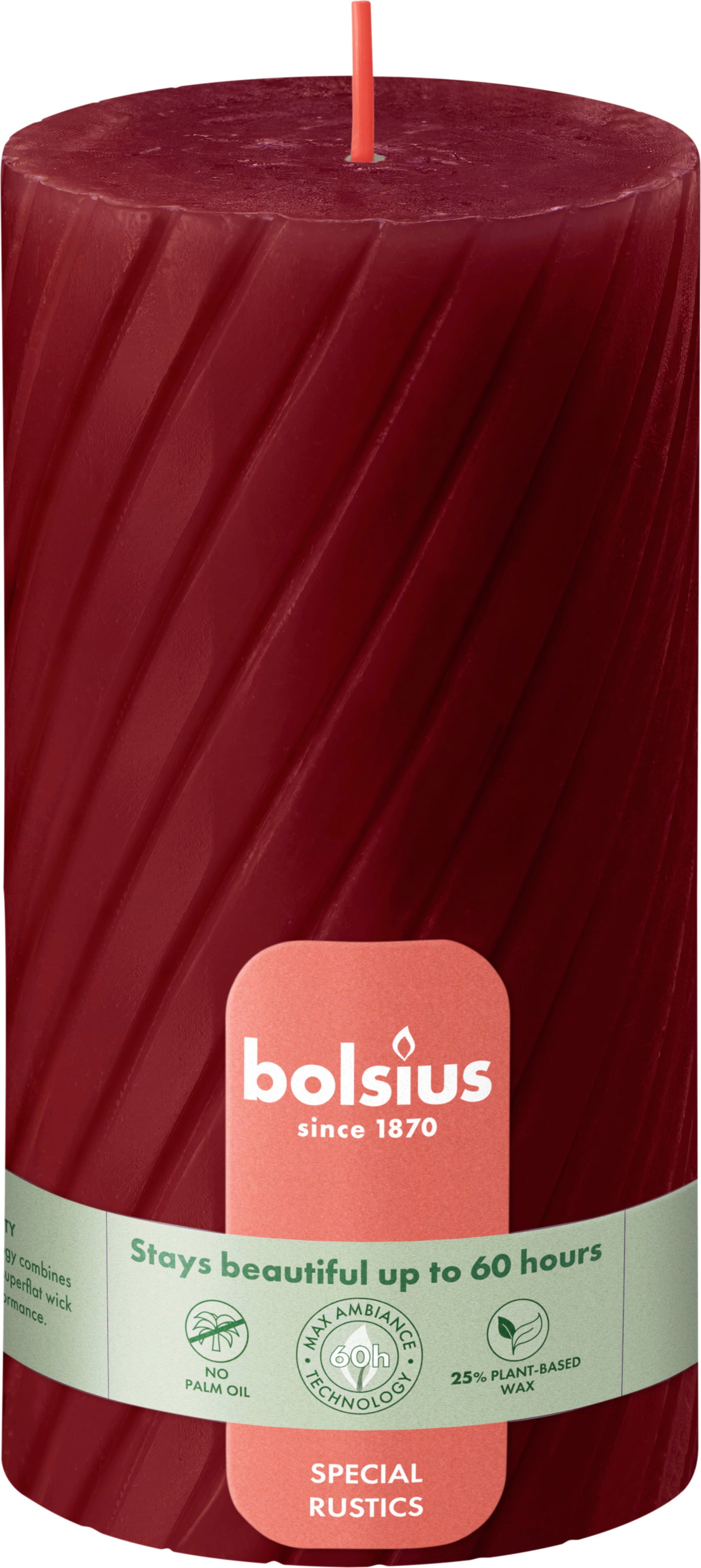 bolsius Rustikblockljus Räfflad 13/6,8 cm, Delikat röd