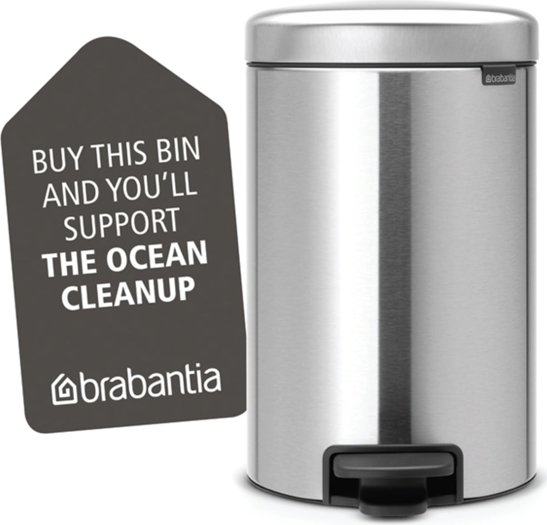 Den här pedalsoptunna har den perfekta storleken för att placeras under ditt skrivbord eller din skänk. Även om den är mycket utrymmesbesparande är den ändå tillräckligt stor för ditt samlade avfall. Den unika mjukstängningsfunktionen garanterar att locket stängs särskilt försiktigt och tyst. Den här pedalsoptunna är inte bara extremt praktisk, utan också en snygg accessoar för hemmet med sin ikoniska design. Dessutom betalar Brabantia ett belopp från varje såld pedalbehållare till The Ocean Cleanup och hjälper på så sätt till att rensa haven från plast.