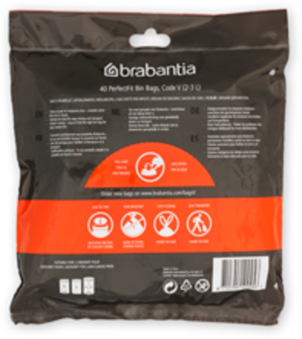 Dessa sopsäckar är exakt anpassade till Brabantias respektive soptunnor med motsvarande kapacitet. De är lätta att stänga och bära med sig tack vare den integrerade dragsnöret och är tillverkade av särskilt hållbar kvalitetsplast (HDPE), vilket gör dem extremt robusta. Dessutom kan de tas ut ur dispenserlådan lika lätt som en näsduk eftersom de, till skillnad från konventionella sopsäckar, inte är ihoprullade.