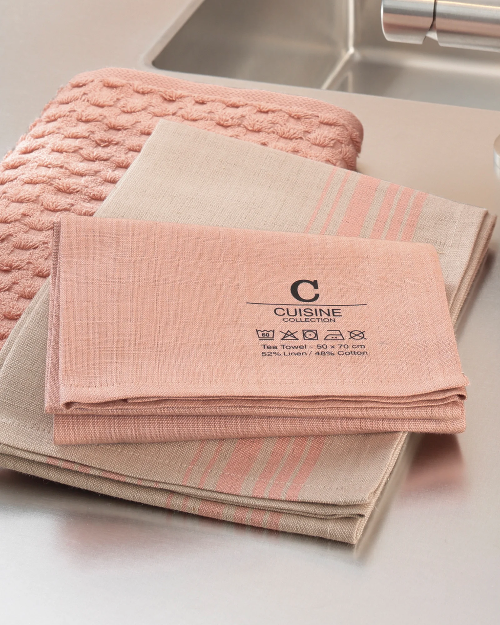 Med sitt rena designuttryck, den fina randdetaljen och de noggrant utvalda, naturliga färgerna ger dessa tidlösa kökshanddukar köket ett fräscht lyft och matchar perfekt med en modern inredning.