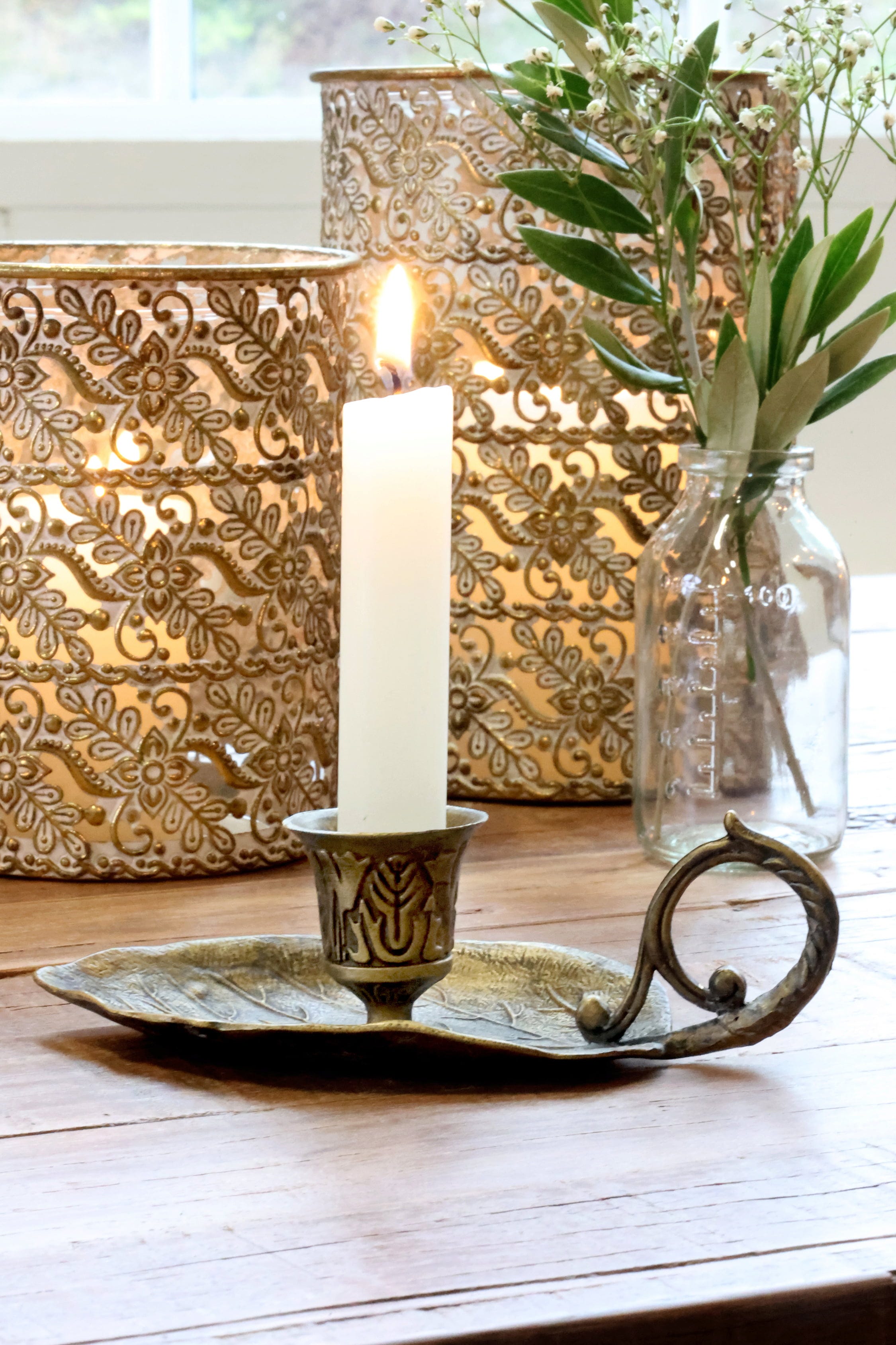 Chic Antique Kammarljusstake med Blad