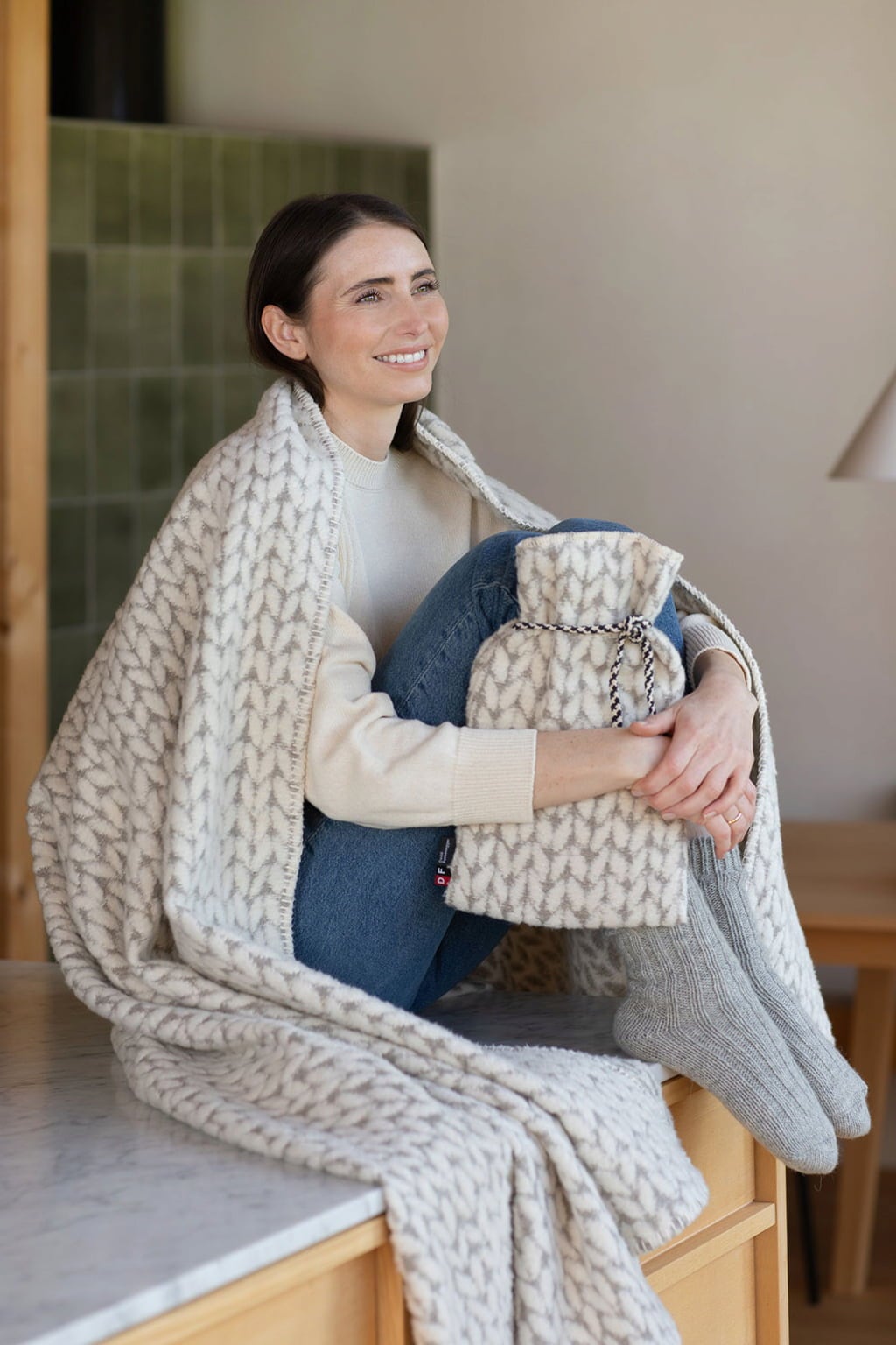 Detta värmeflasköverdrag i högkvalitativ återvunnen bomull, tillverkat i Österrike, kombinerar mjuk och behaglig känsla med en stilfull design.