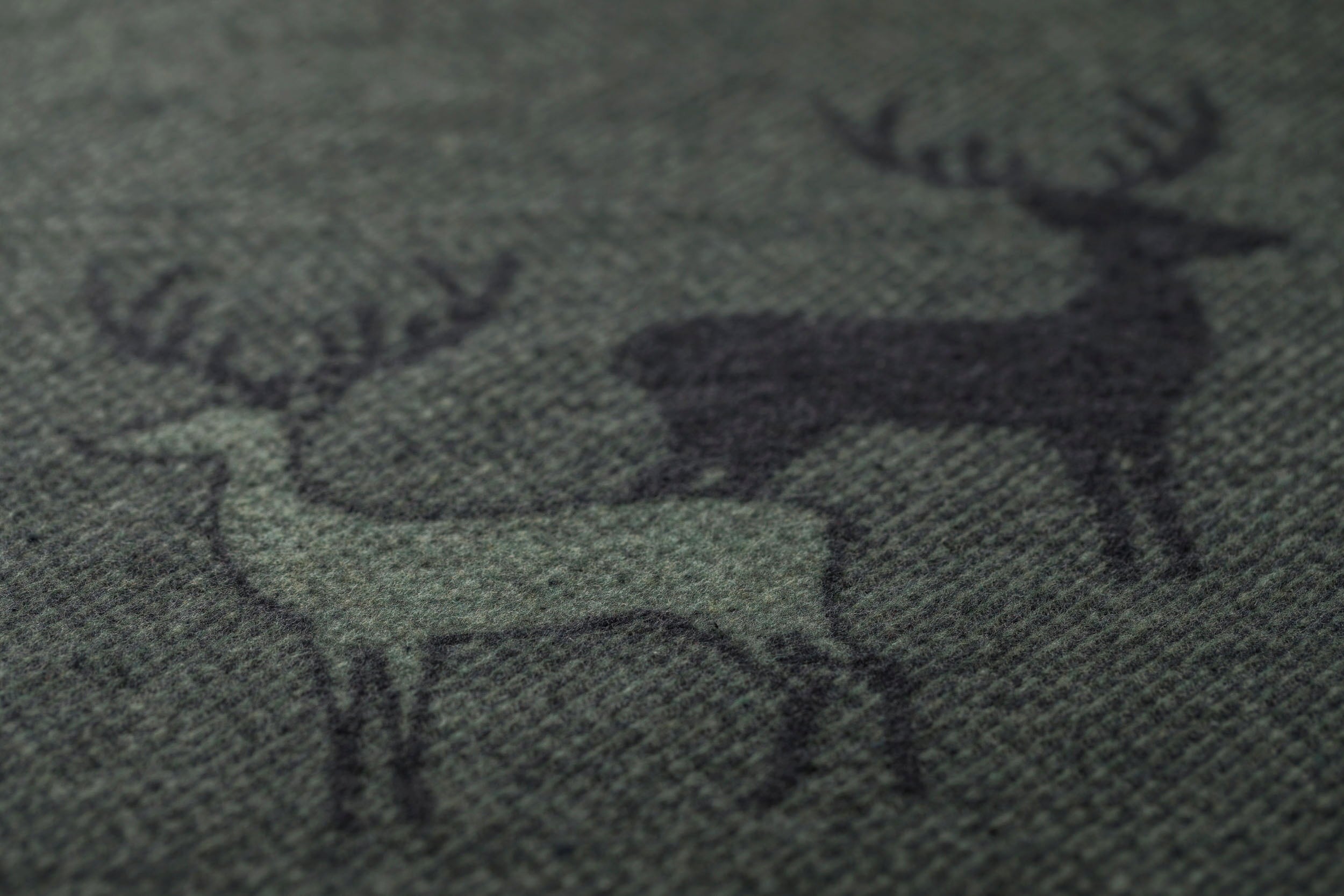 Hjortpar som klassiskt motiv och mysig bomullsflanell gör denna lätta allroundfilt till en perfekt följeslagare – oavsett om det är i soffan, som extra värme i sängen eller på terrassen under svala sommarkvällar.
