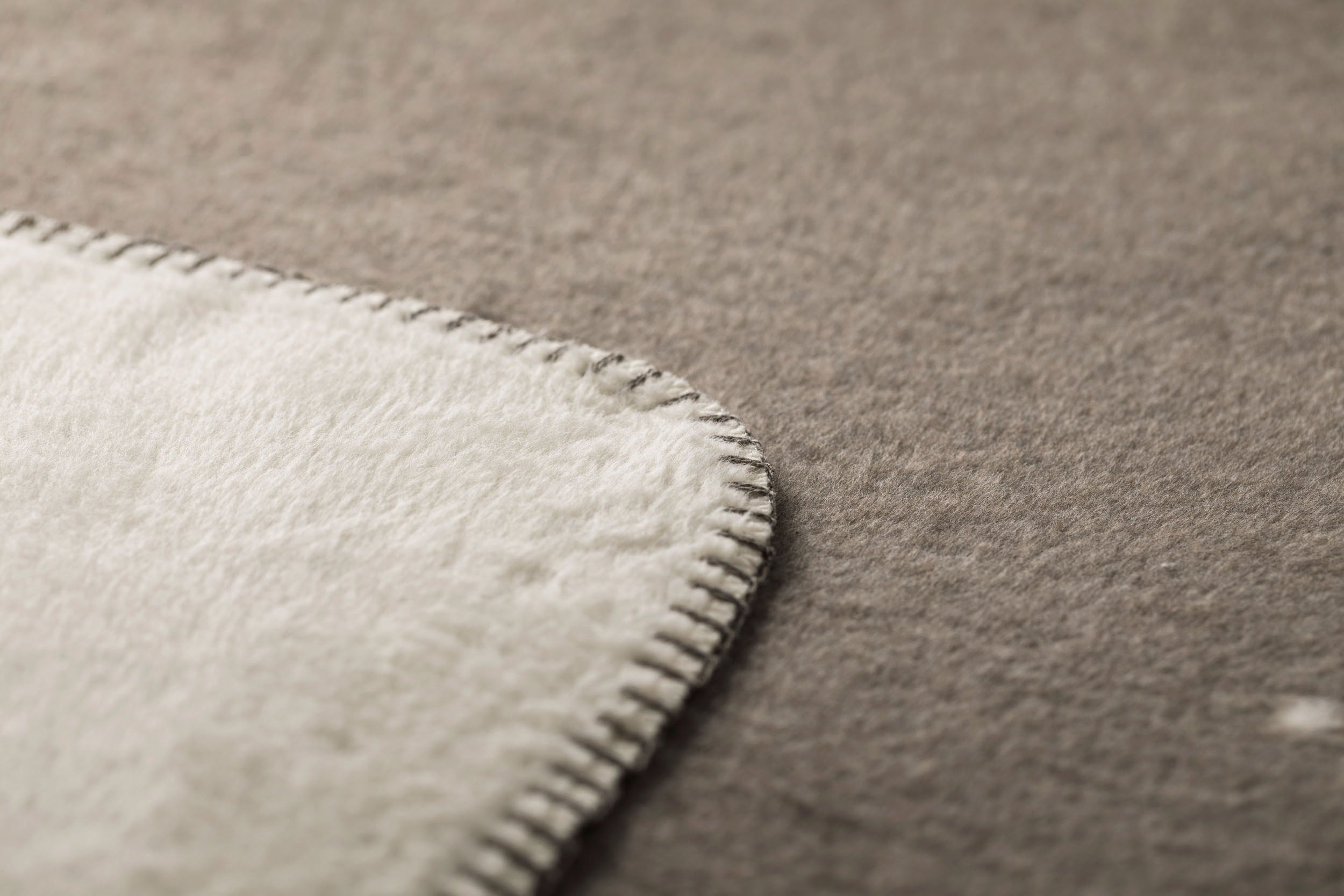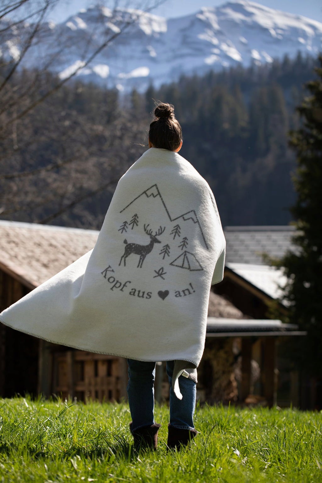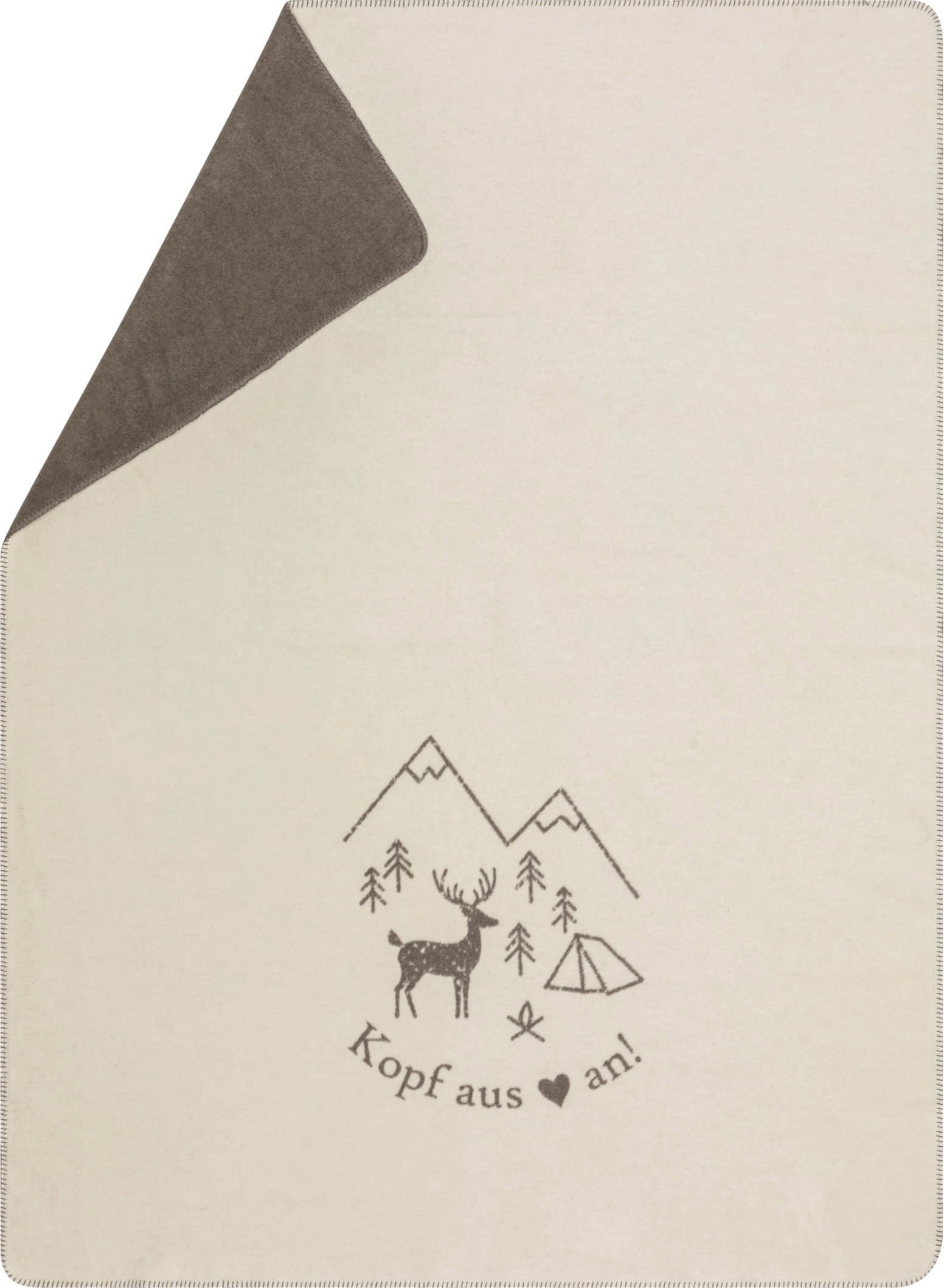 Pläden "Kopf aus" bjuder inte bara på ett stilfullt uttryck – den övertygar även med mjuk känsla och noggrant utvalt material. Med tvåfärgad design och dekorativa detaljer passar den perfekt som mysig accent i alla hem.