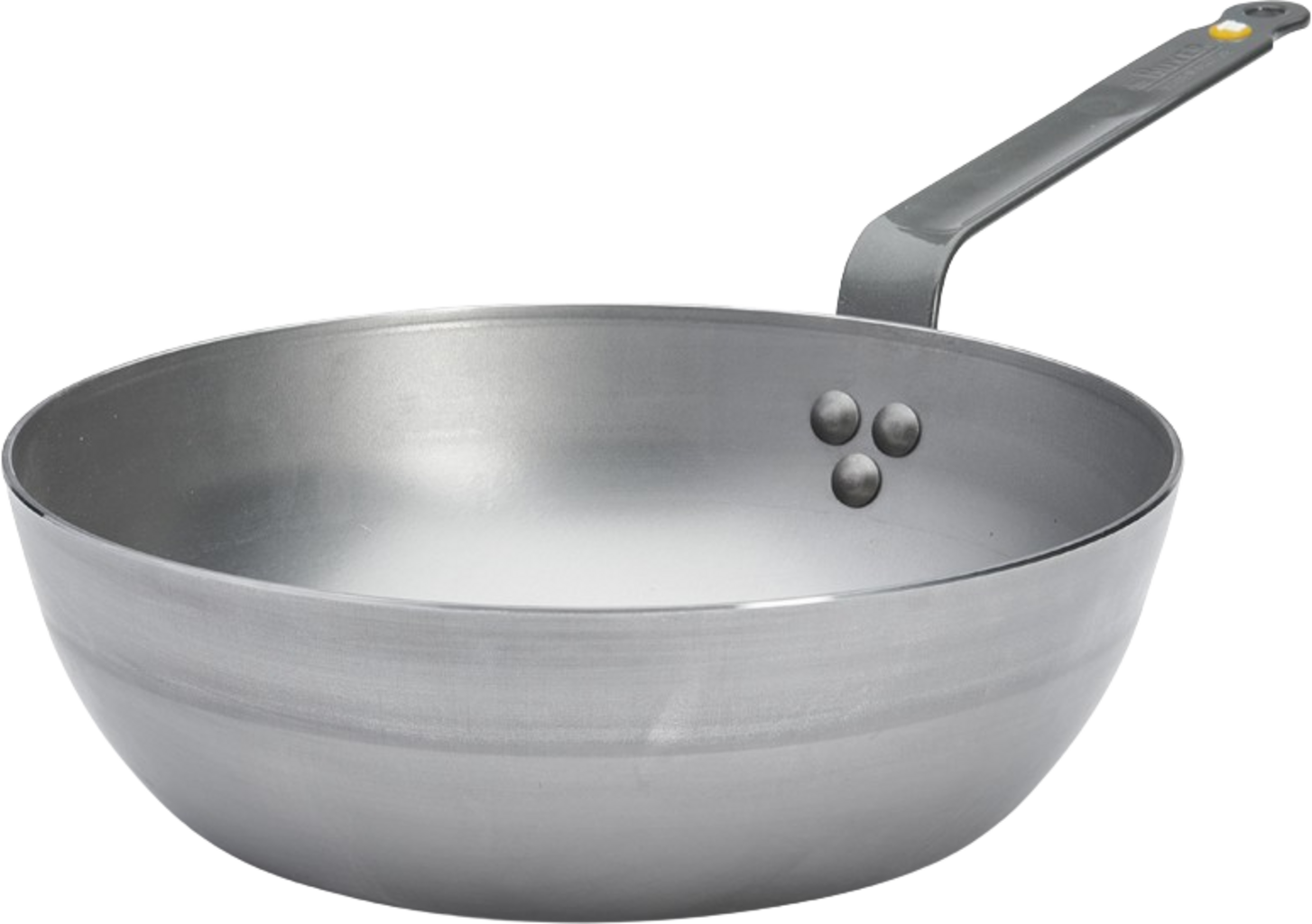 Tillverkad av högkvalitativt stål och behandlad med bivax för att skydda mot oxidation. Pannan är lätt att bränna in och förbättras över tid. Det nitade, böjda handtaget i rostfritt stål ger säkert grepp och förblir svalt under användning – för bekväm hantering vid spisen!