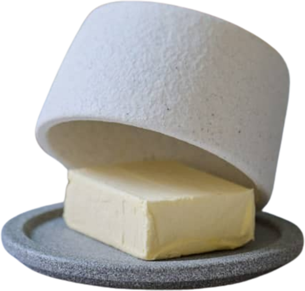 Denna tvådelade smörkylare i högkvalitativ keramik håller din smör mjukt och bredbart – utan kylskåp! Den utnyttjar principen av avdunstningskyla för att sänka temperaturen inuti kärlet.