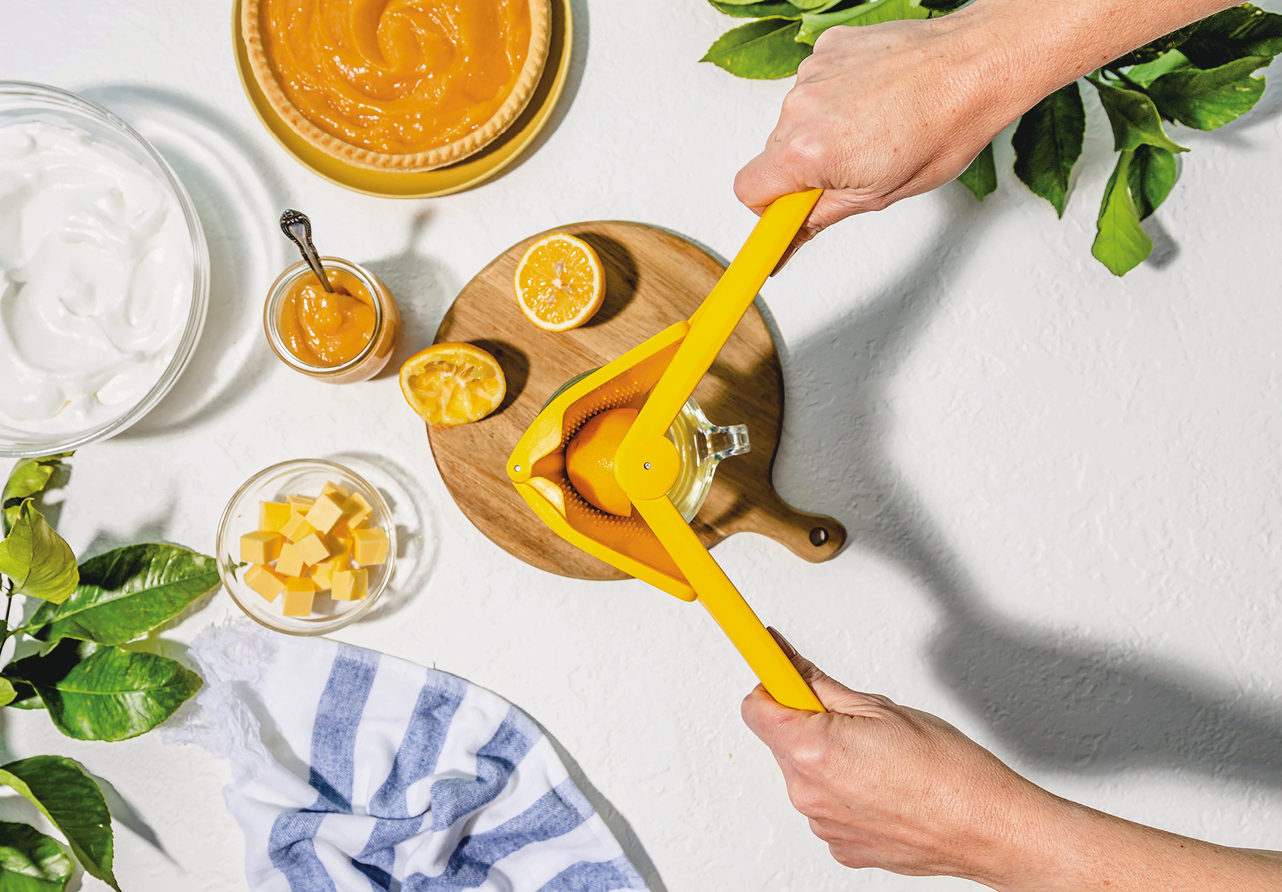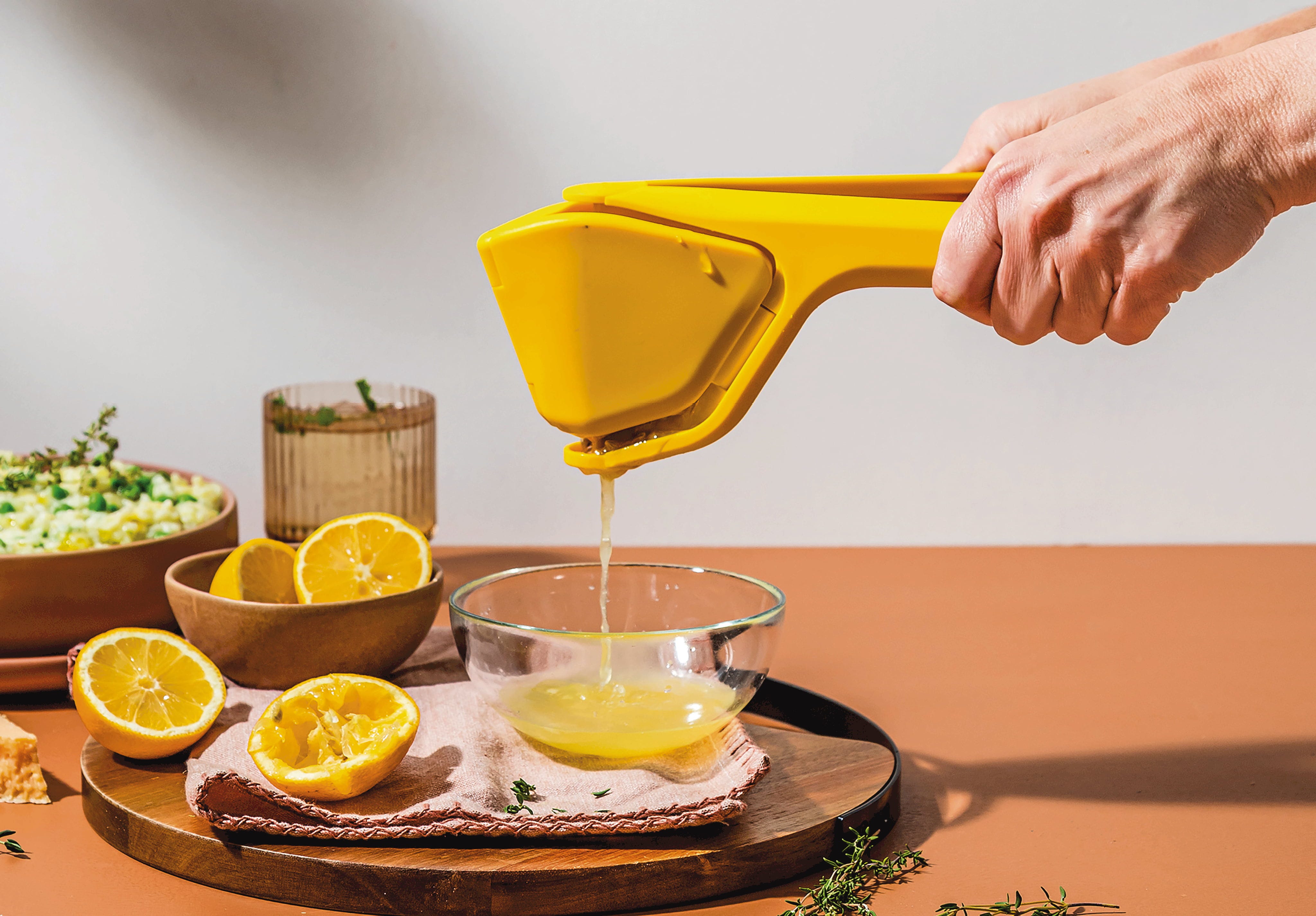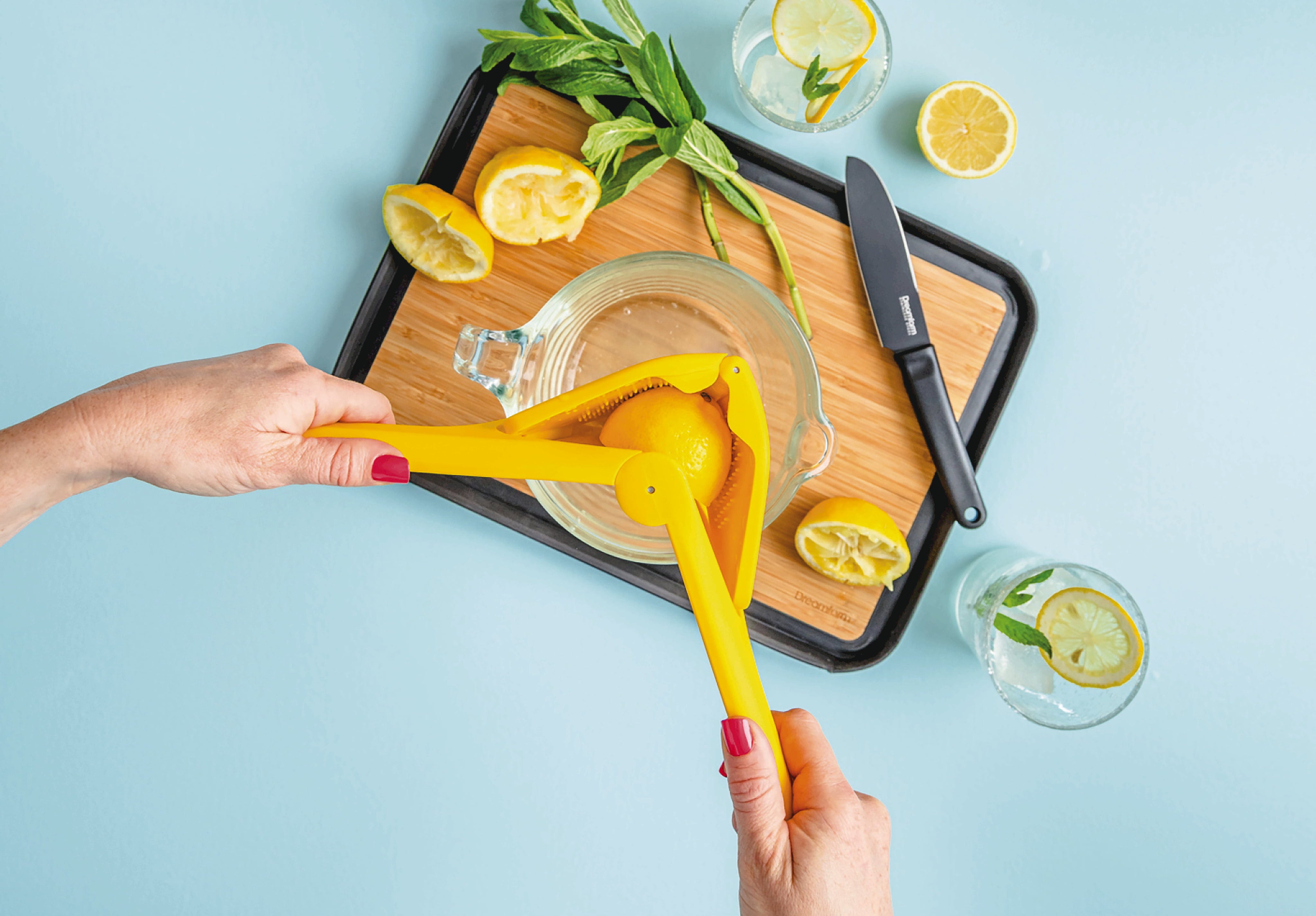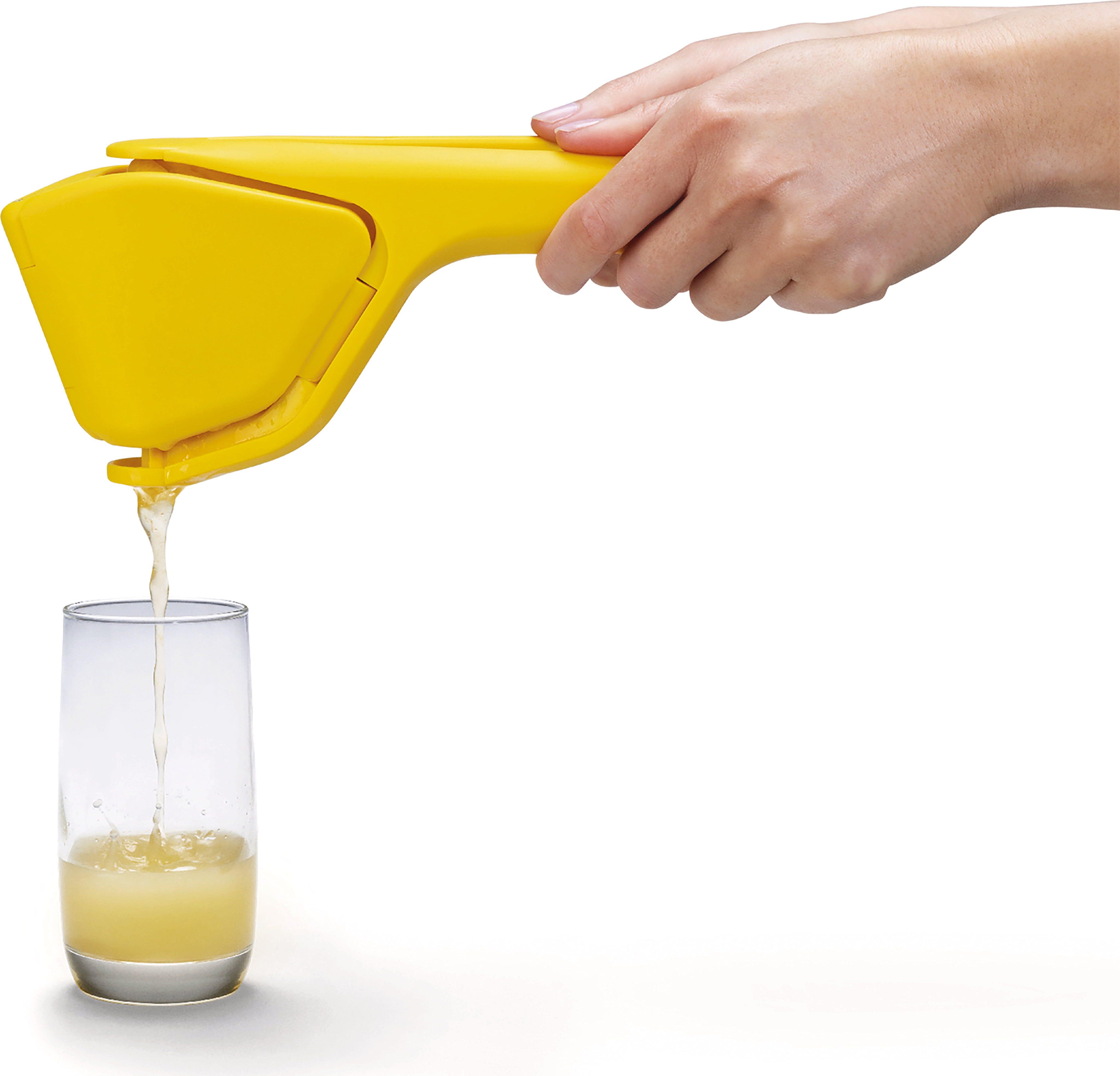 Juicepressen Fluicer från Dreamfarm är ett av de mest effektiva sätten att pressa citrusfrukter. Den innovativa fällmekanismen pressar frukten både från utsidan och insidan för maximal saftutvinning. Det långa handtaget ger stark hävstång för enkel pressning, medan det integrerade stänkskyddet håller arbetsytan ren. Efter användning kan verktyget fällas helt platt för smidig och platsbesparande förvaring.