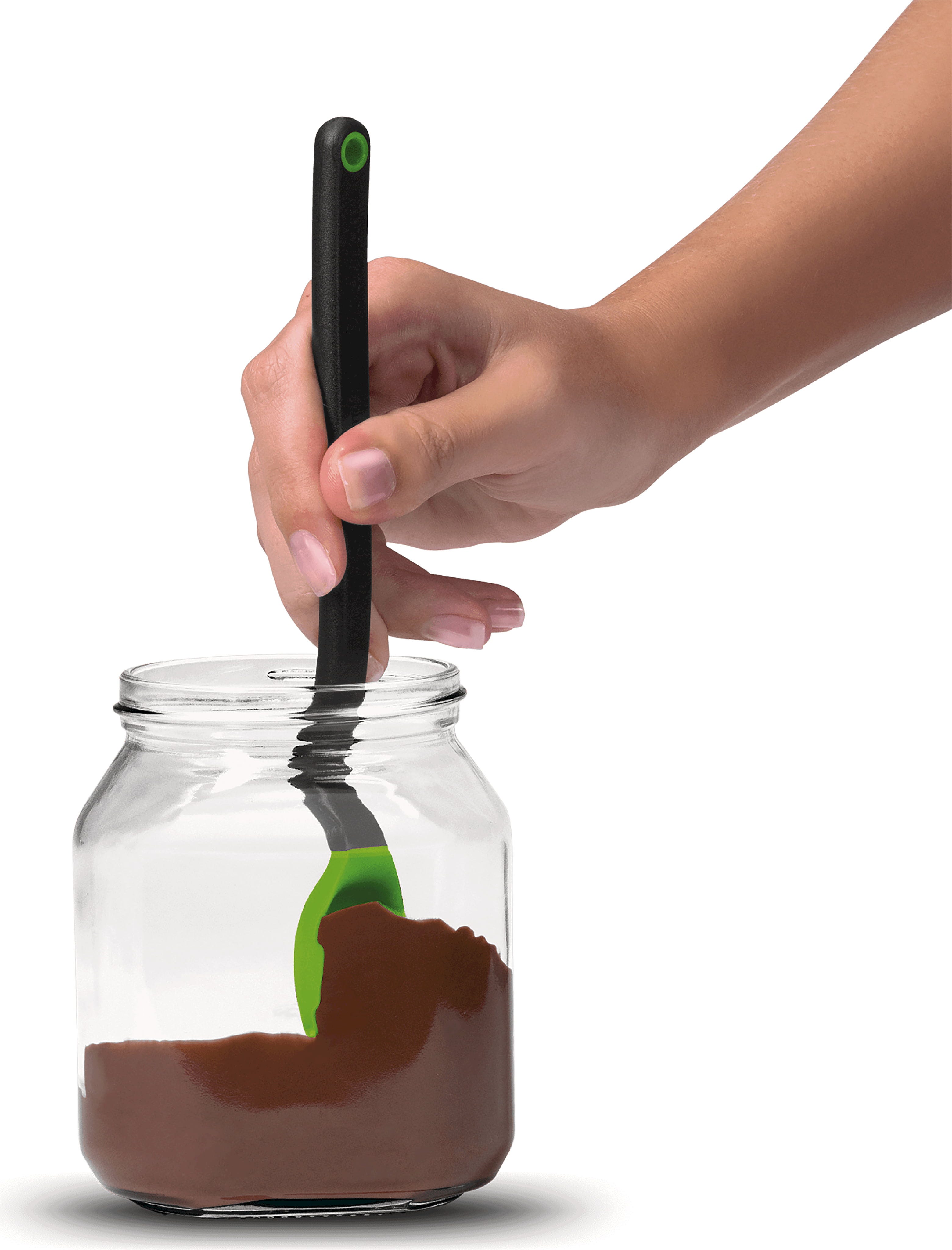 Med skeden Mini Supoon från Dreamfarm får du ett riktigt multiverktyg i köket som kombinerar omrörning, skopning, mätning och urskrapning i ett och samma redskap. Tack vare det flexibla silikonhuvudet når du enkelt varje hörn i dina burkar med sylt eller chokladkräm och skrapar ur allt utan rester.