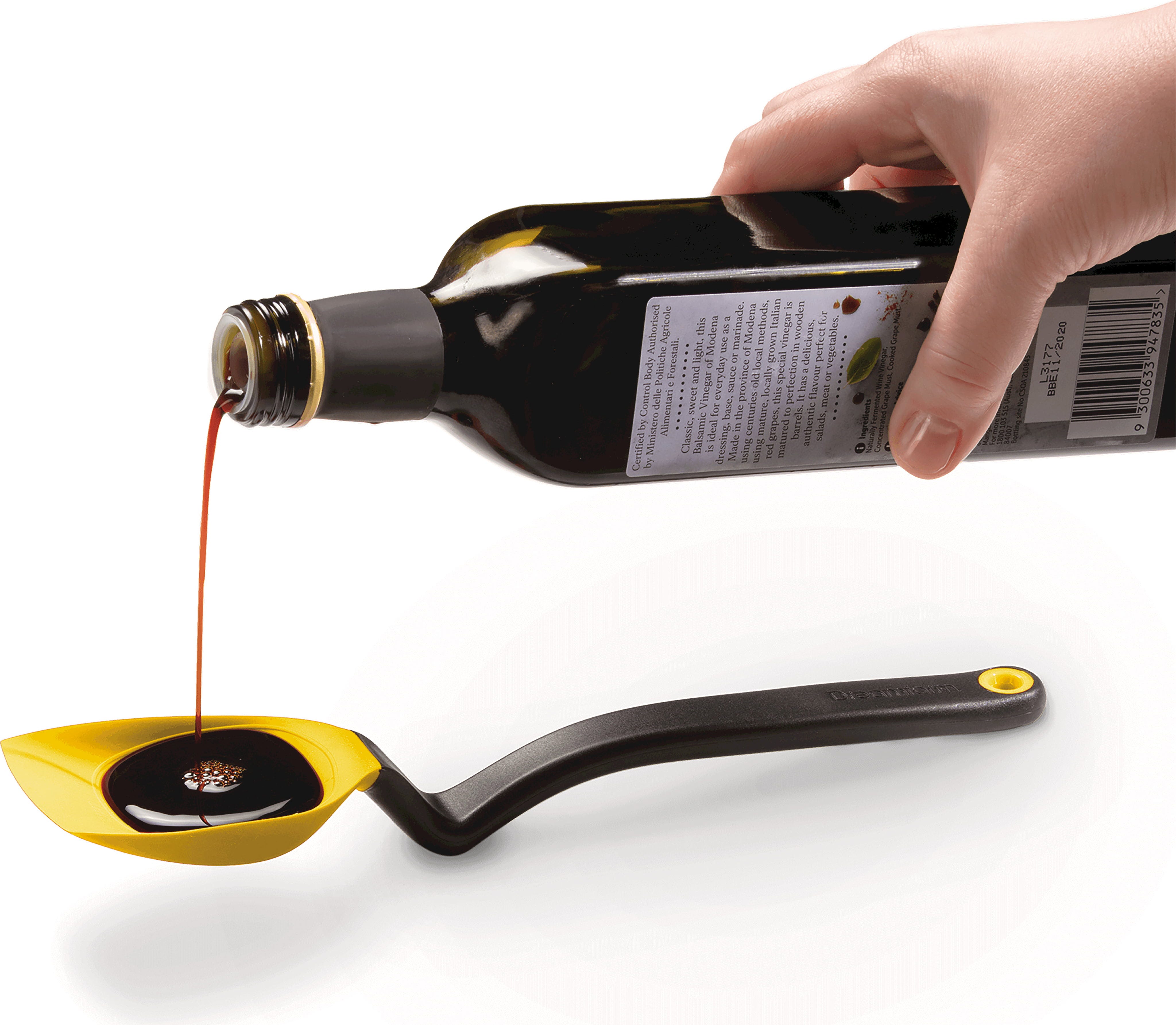 Tack vare den integrerade böjen svävar skedhuvudet över arbetsytan så att du kan lägga ner det rent utan fläckar. Alternativt kan du hänga det direkt på kastrullkanten. Med de integrerade måttenheterna kan du mäta exakt 15 ml (en matsked), dessutom är Supoon värmebeständig upp till 260 °C.