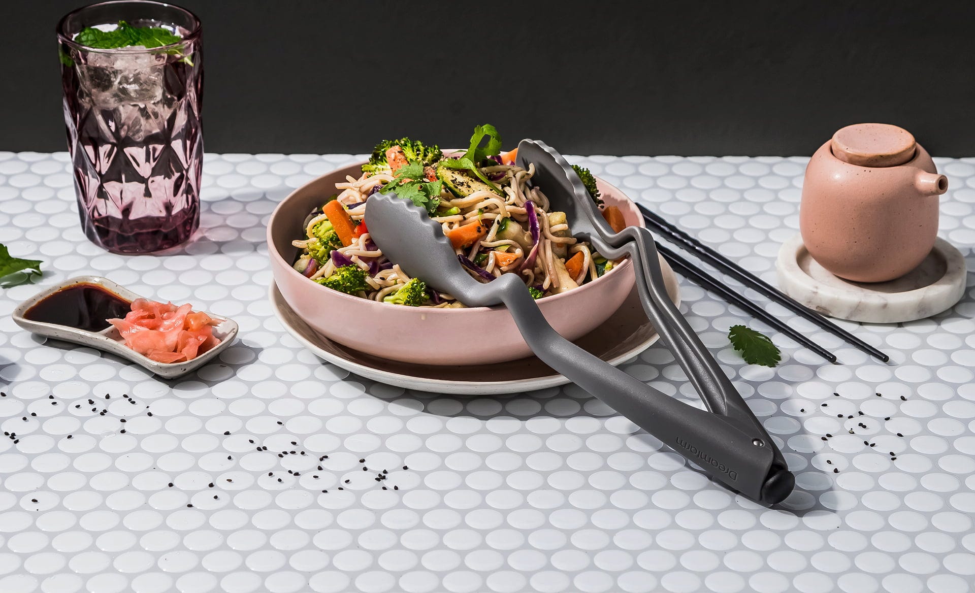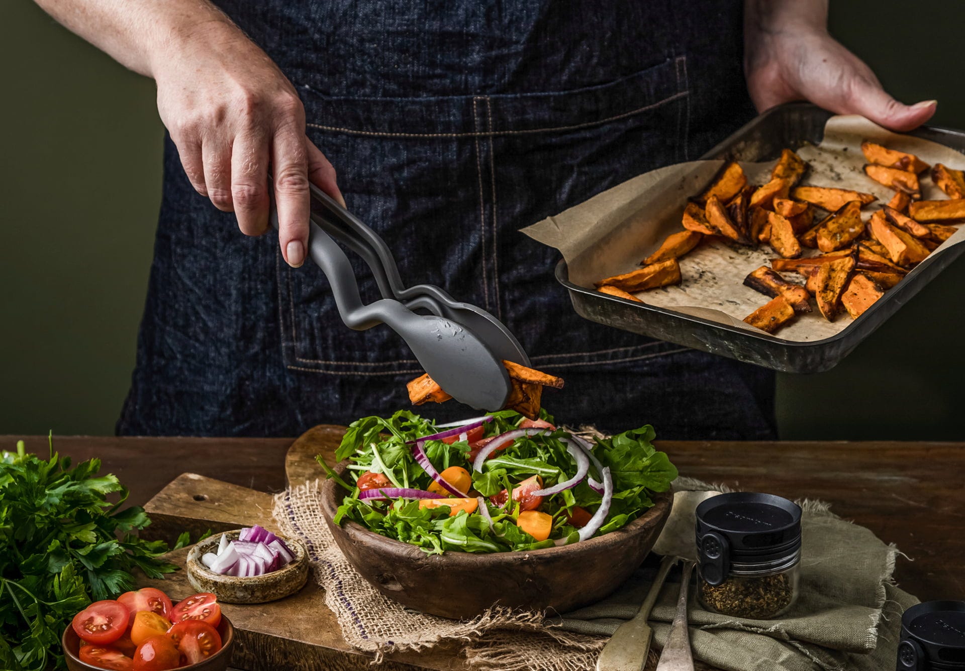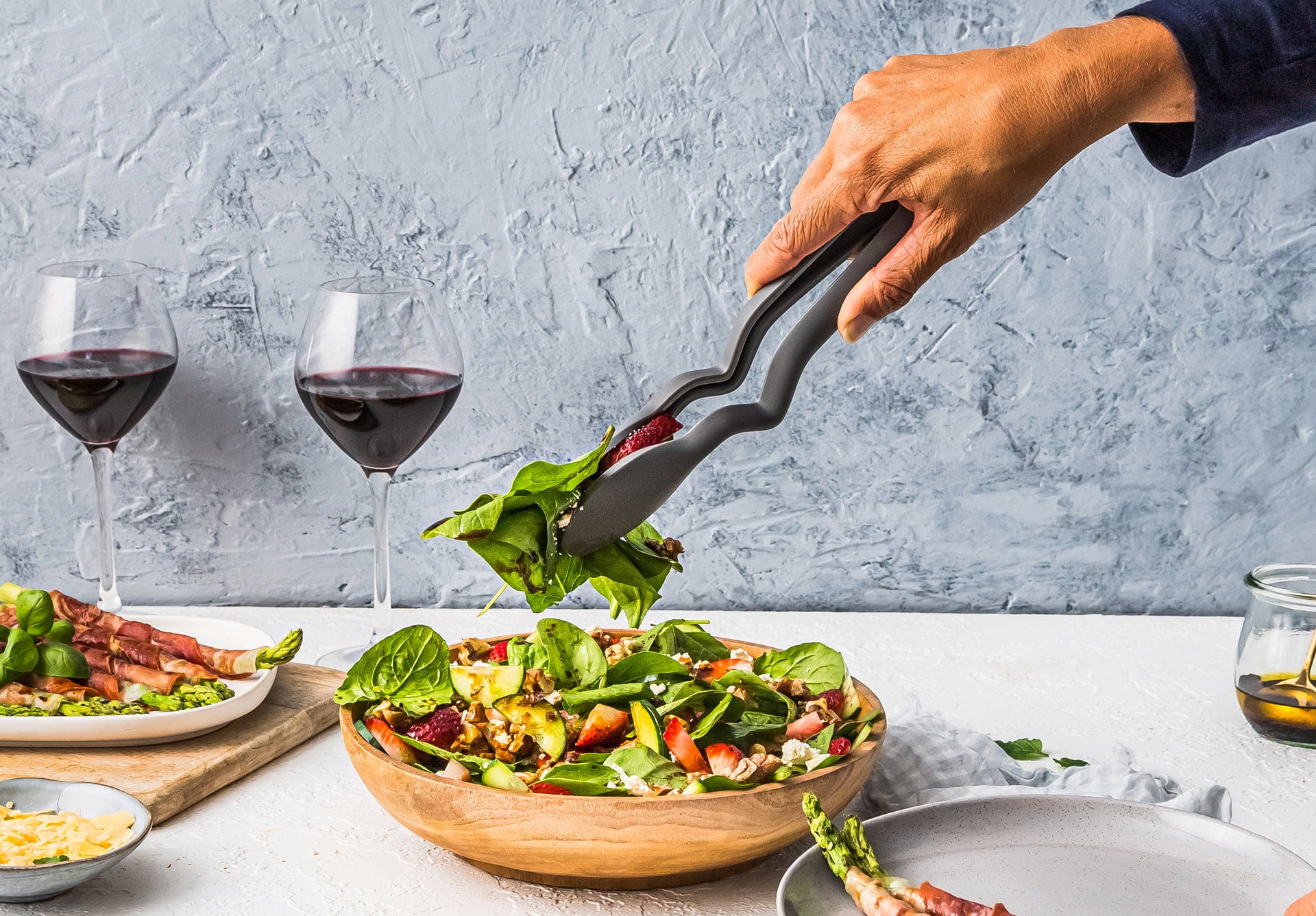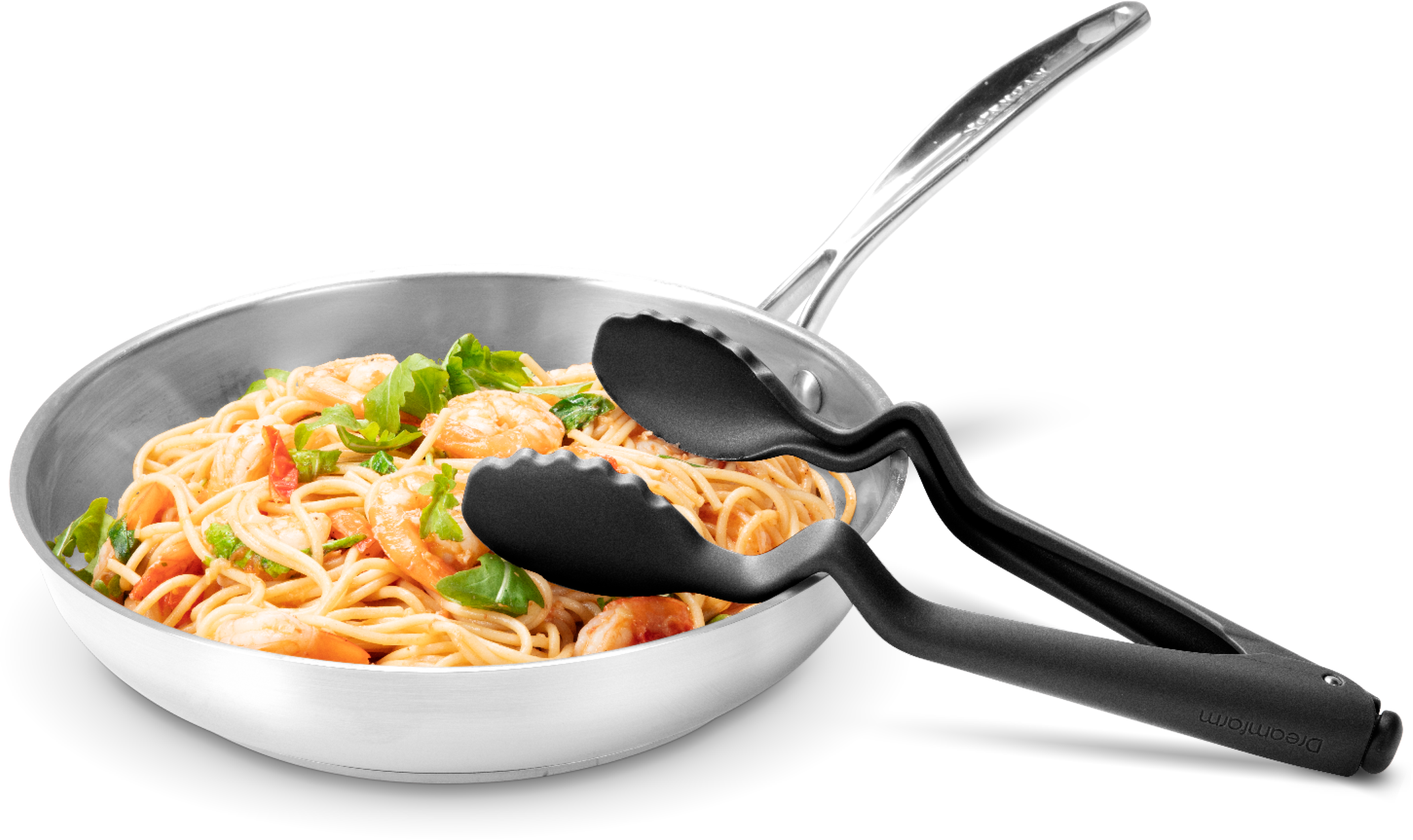 Från och med nu håller du arbetsytan fläckfri under matlagningen. Tack vare den smarta böjen i handtaget svävar tånghuvudena på Clongs Lite från Dreamfarm alltid över ytan eller kan hängas säkert direkt på kastrullkanten. Med det praktiska klicklåset i handtagets ände öppnar och stänger du tången enkelt med en hand via ett knapptryck.