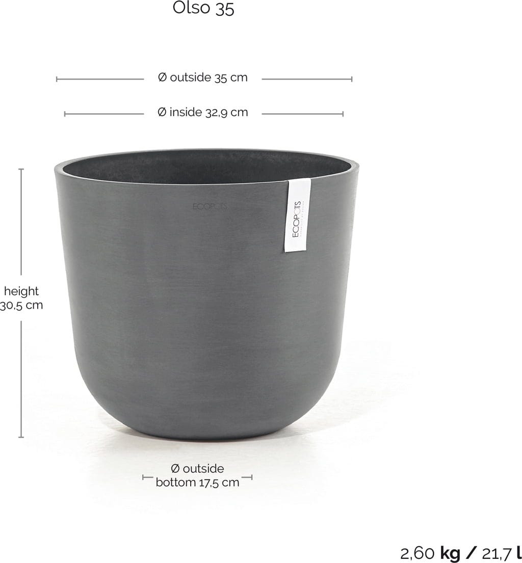 Ecopots Oslo Blomkruka grå, Ø 35 cm, höjd 30,5 cm