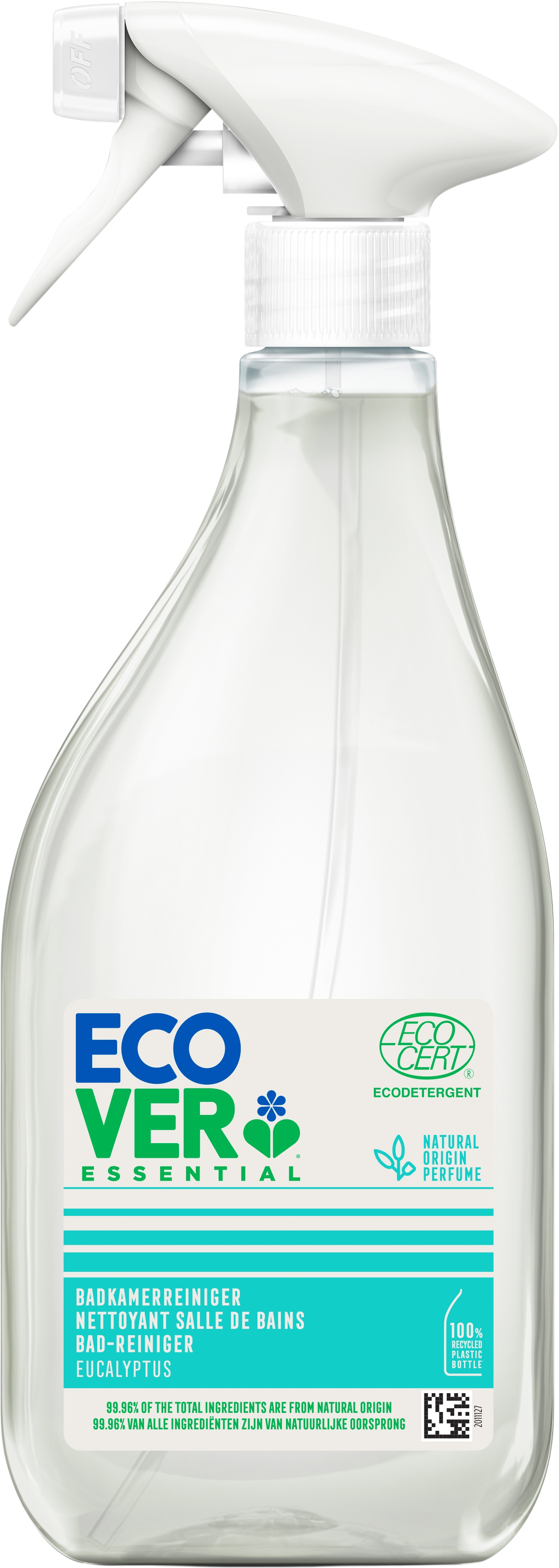 Badrumsrengöraren från Ecover's Essential-produktlinje tar effektivt bort tvålrester.