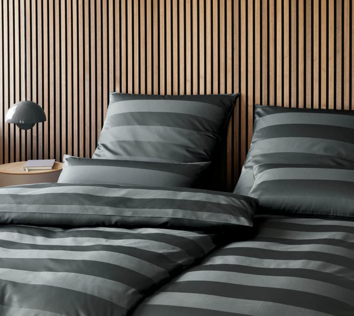 Ge ditt sovrum en touch av lyx med jacquardbäddsetet En Bloc. Det fint vävda blockrandiga mönstret i eleganta nyanser skapar en modern och harmonisk känsla. Tillverkat i högkvalitativ Mako-satin av 100 % bomull imponerar bäddsetet med sin silkeslena glans och mjukt släta yta – perfekt för avkopplande nätter.
