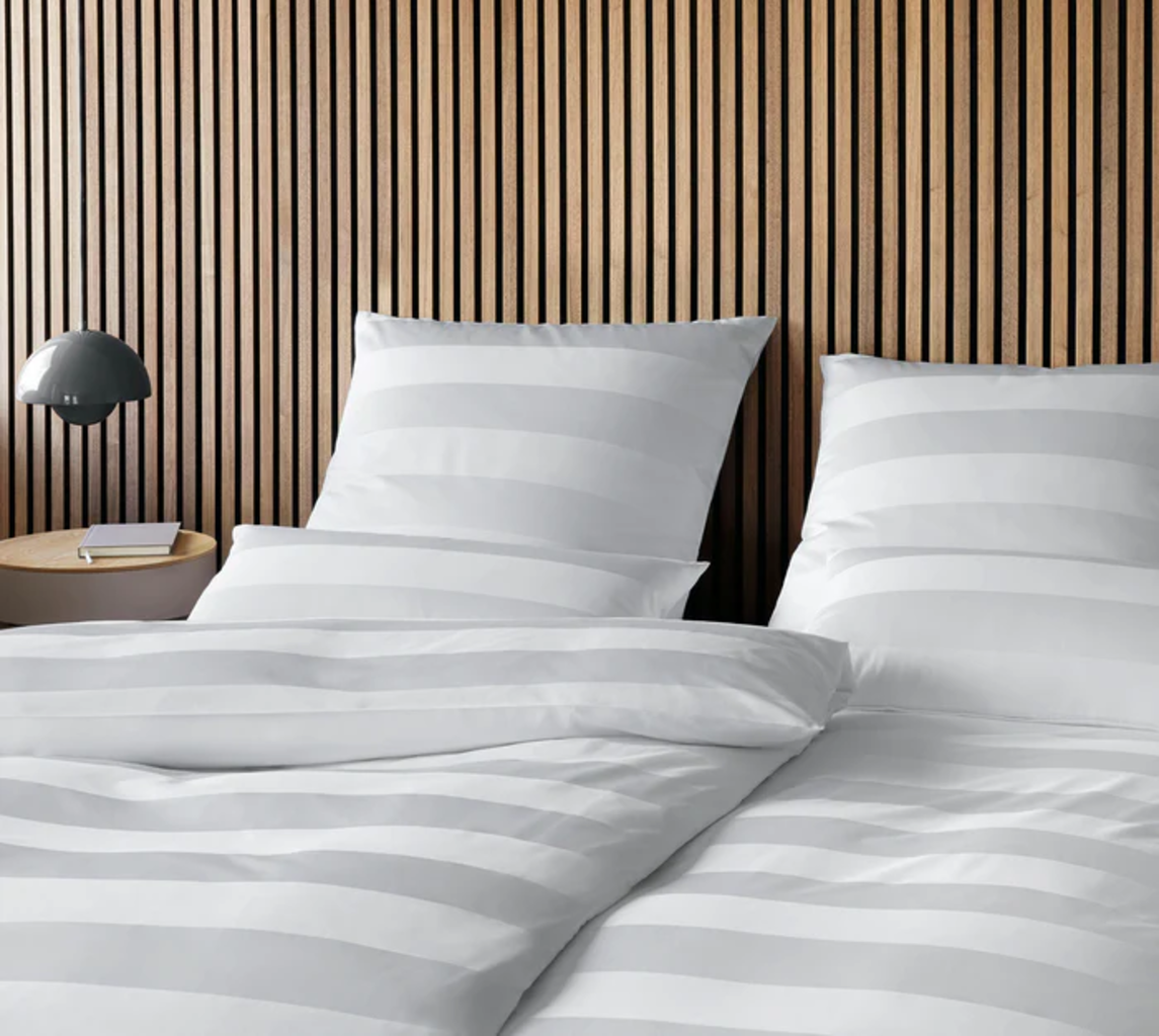 Med jacquardbäddsetet En Bloc i vitt ger du sovrummet en tidlös och sofistikerad känsla. Det fint vävda blockrandiga mönstret i slät Mako-satin skapar ett elegant och harmoniskt uttryck, medan den silkeslena ytan ger en behaglig och lyxig känsla. Perfekt för dig som uppskattar enkel elegans och hög komfort.