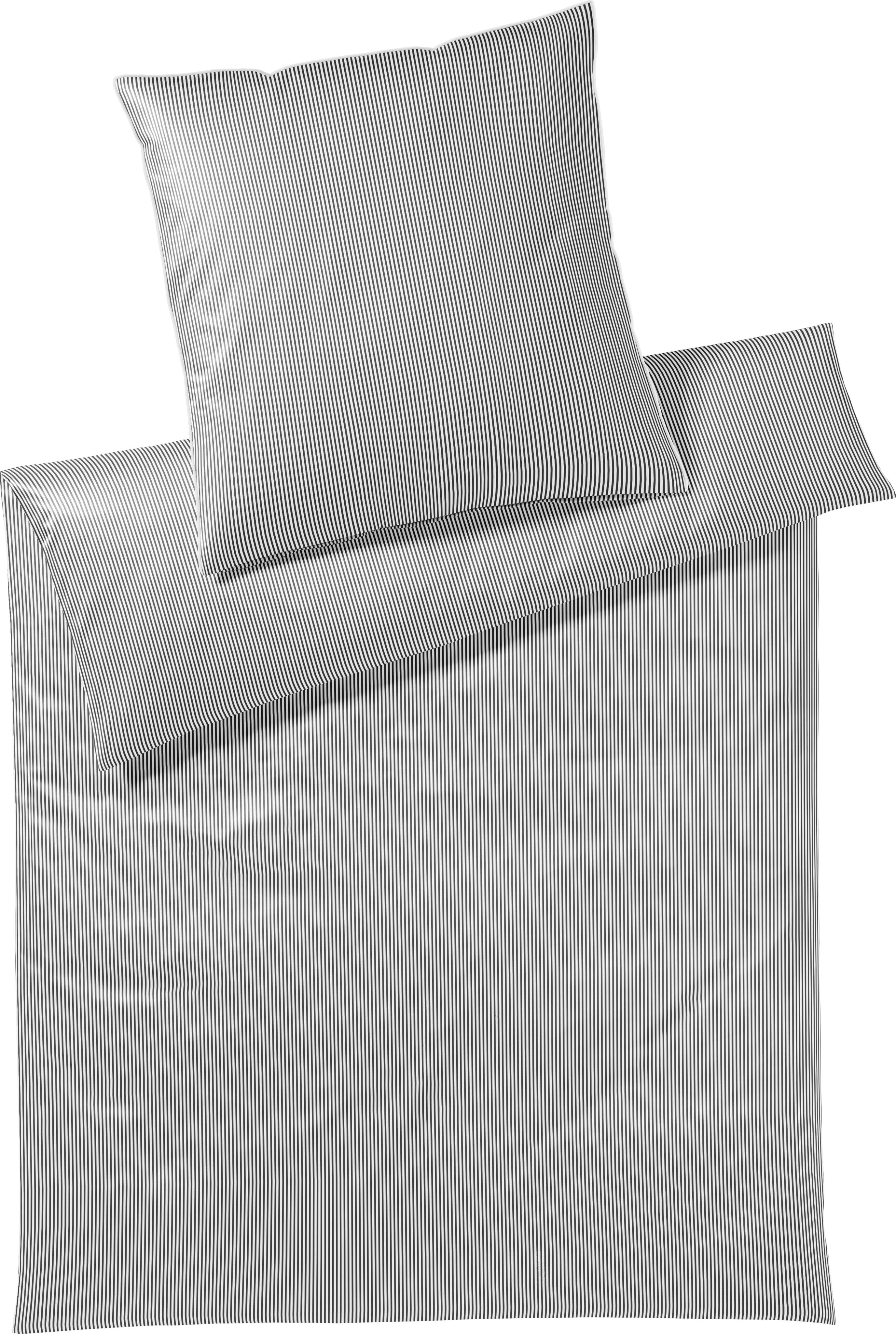 elegante Bäddset Mako-Satin Hamburger Ränder Grå