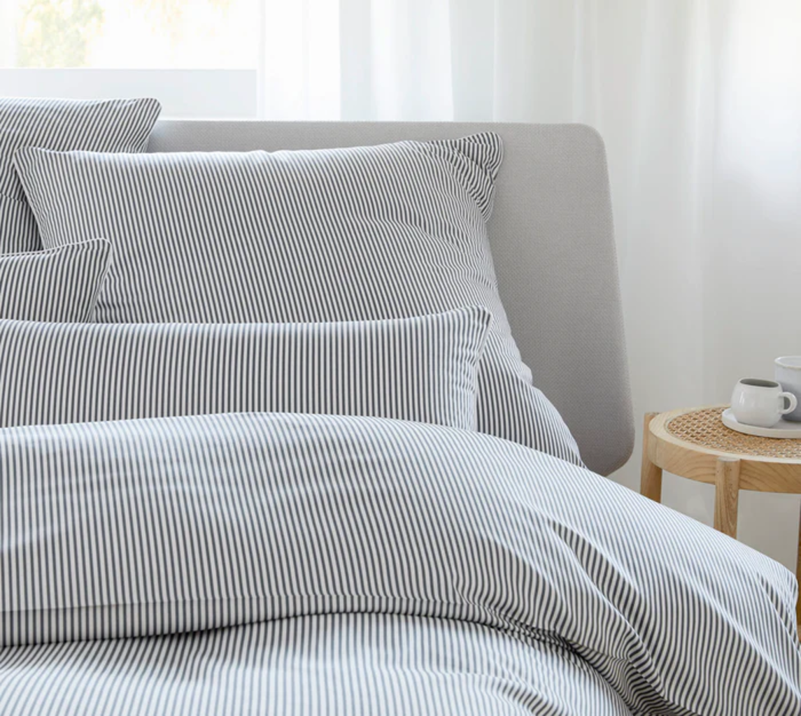Mako-Satin Påslakan Hamburger Ränder Gråvita från elegante
