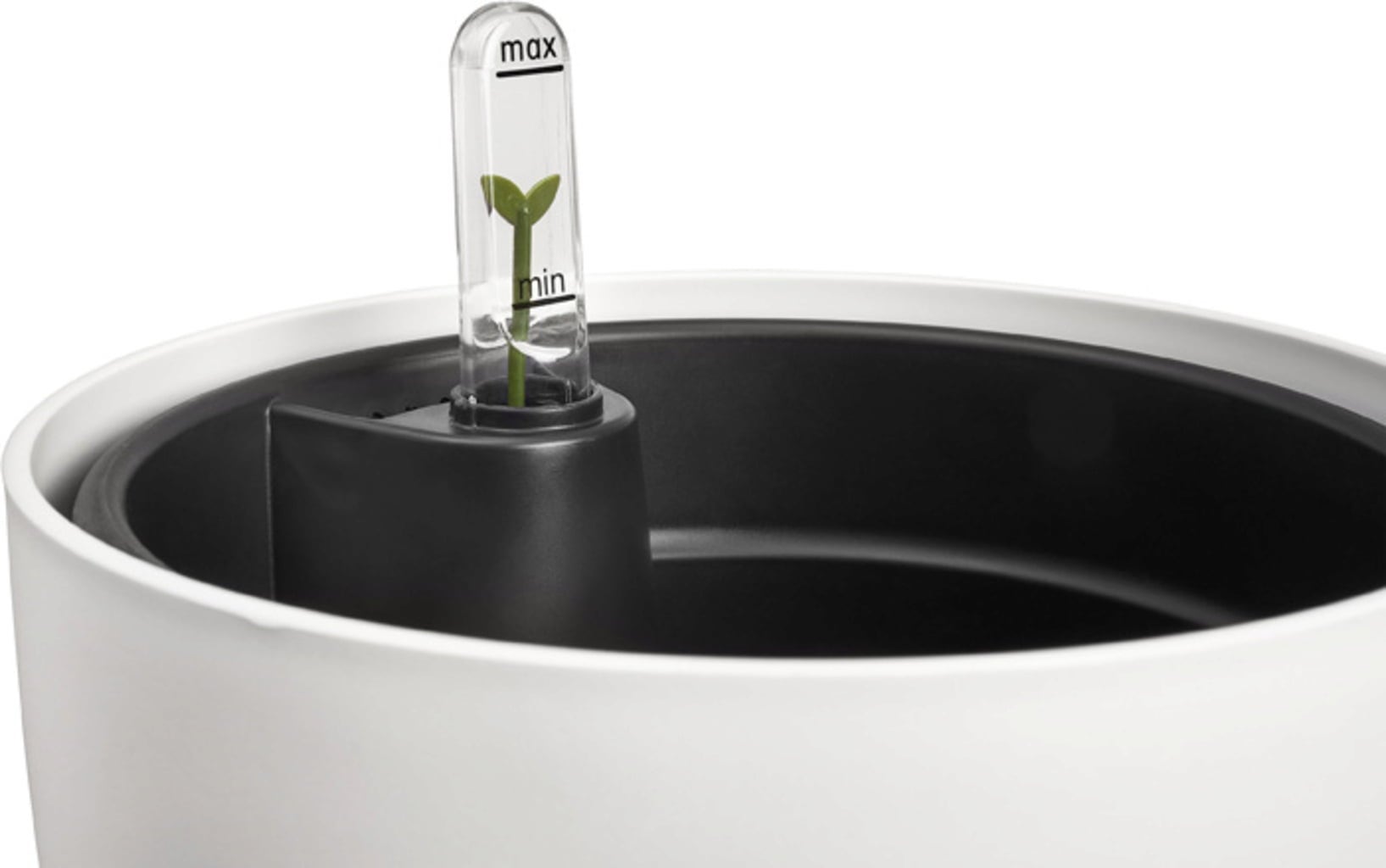 Den här krukan i återvunnen plast imponerar med sin tidlöst stilrena design och robusta kvalitet. Den passar lika bra i olika inredningsstilar och lyfter fram dina krukväxter på ett elegant sätt. Extra praktiskt: det integrerade självbevattningssystemet förser dina växter med vatten – så du slipper vattna varje dag.