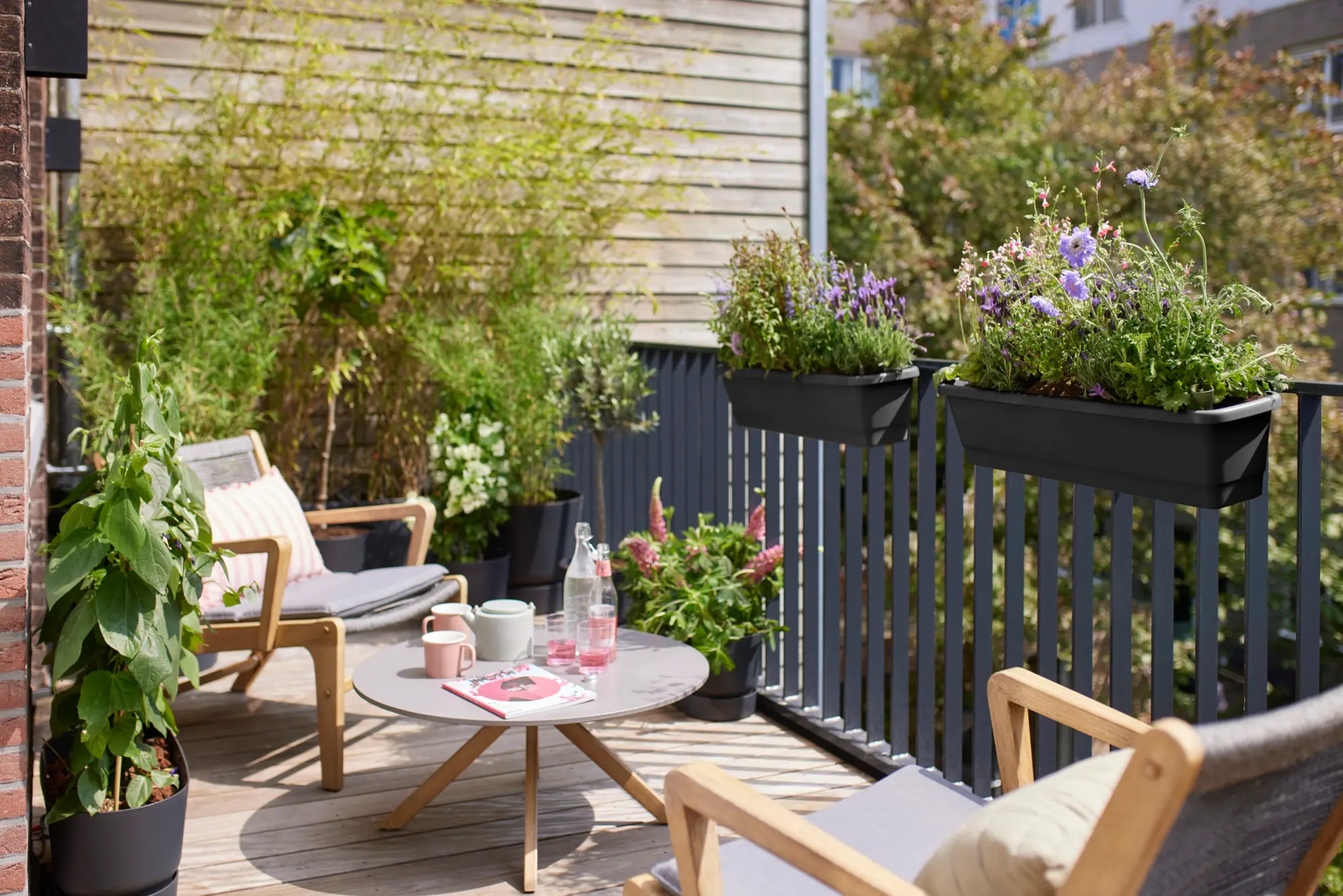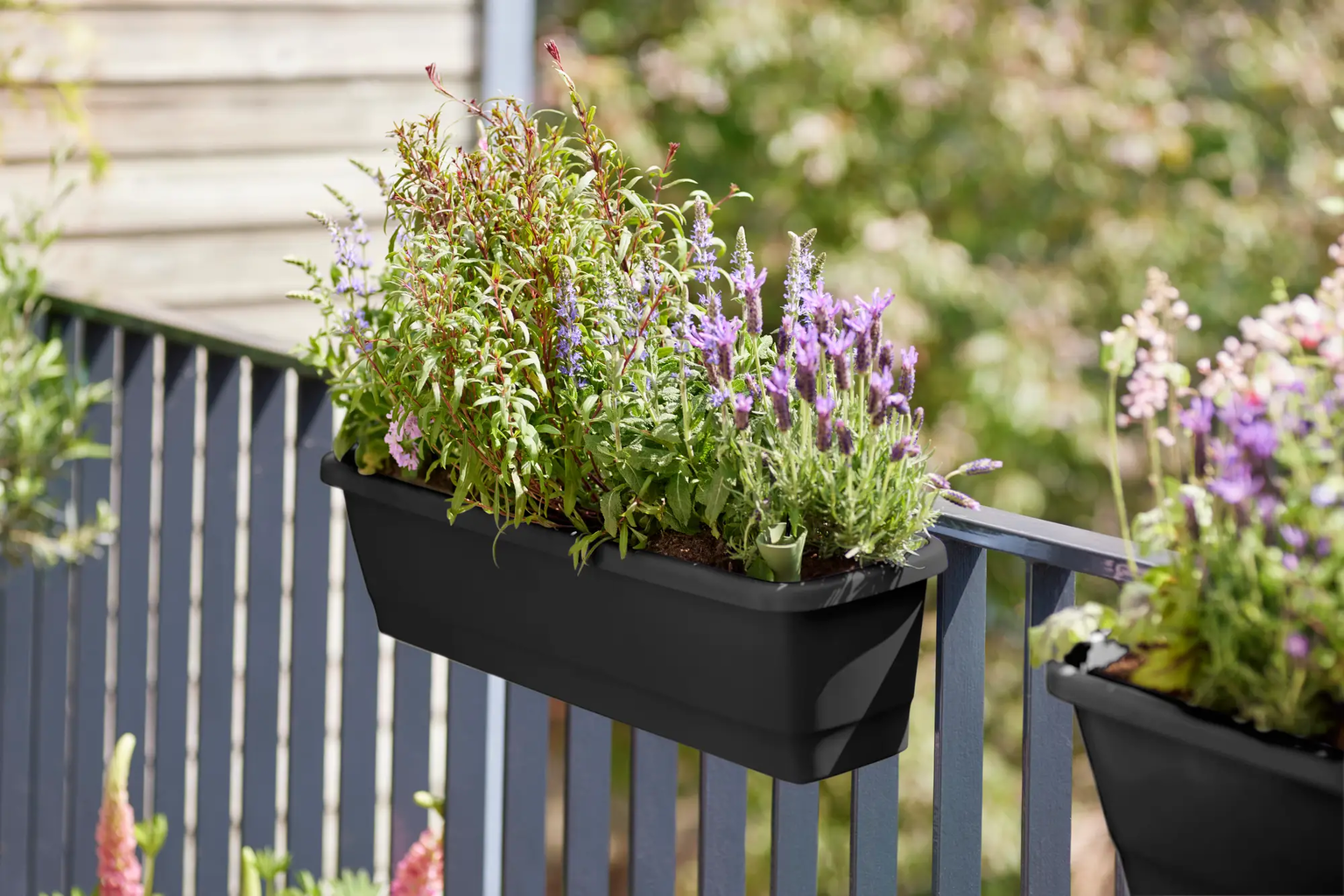 Med Noa balkonglåda är du välutrustad året runt. Det robusta materialet är helt väderbeständigt och kan därför stå ute även på vintern. Men Noa kan också imponera under sommarmånaderna, eftersom det finns en stor vattenreservoar gömd i marken som skyddar dina växter från att dö av törst. Även om du glömmer att vattna, kommer dina skyddslingar alltid att bli väl omhändertagna.