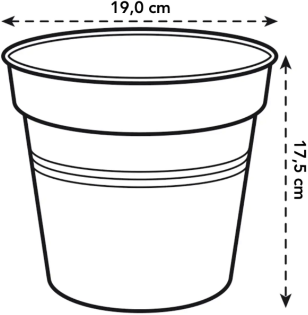 | Ø Kruka (cm) | Höjd (cm) | Volym (l) | Matchande fat (cm) |