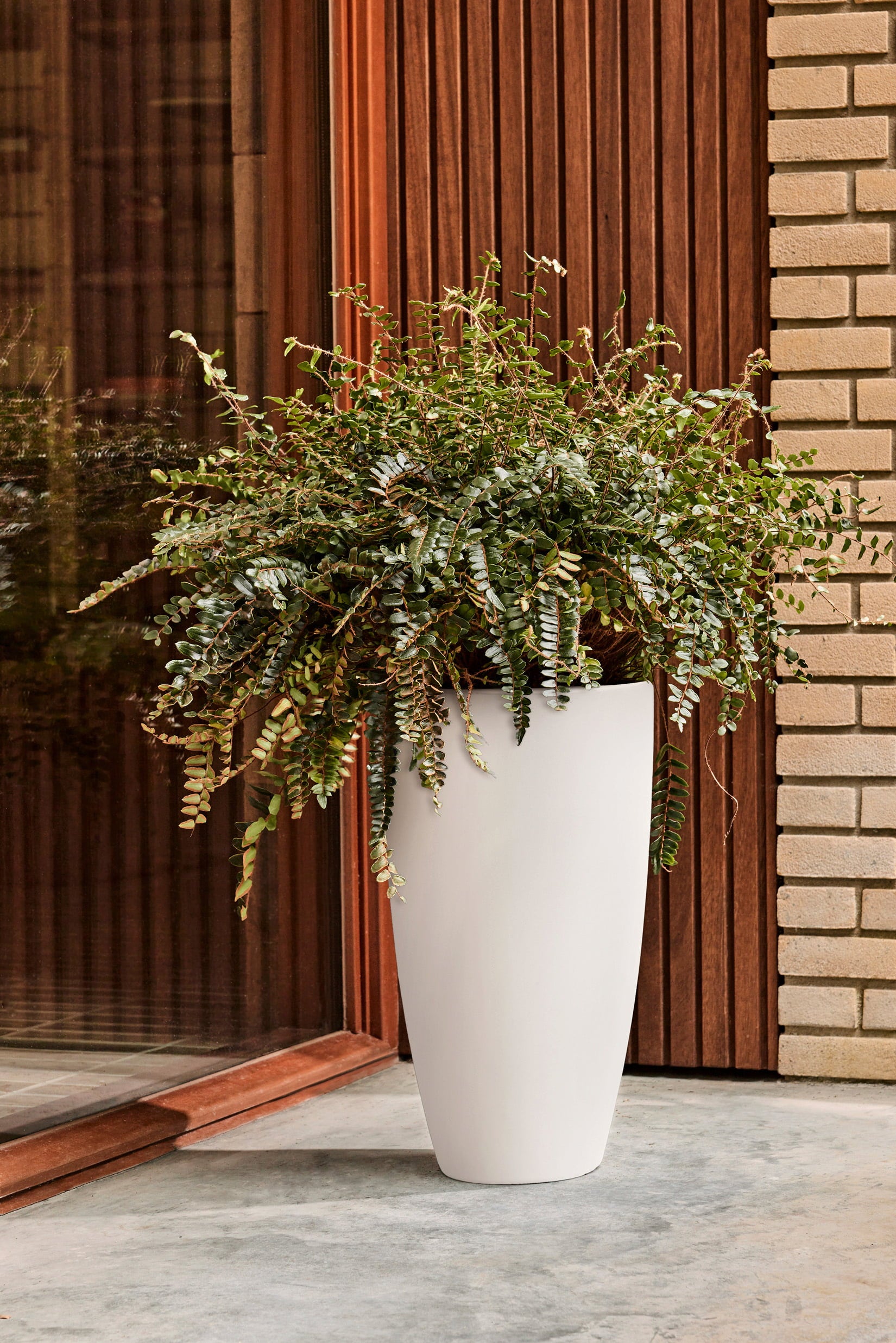Den här planteringskrukan i återvunnen plast imponerar med sin stilrena design som tillför tidlös elegans till alla rum och passar in i en mängd olika inredningsstilar. Den fungerar även utmärkt i trädgården, på terrassen eller balkongen där den sätter en stilfull och grön prägel på din utemiljö.