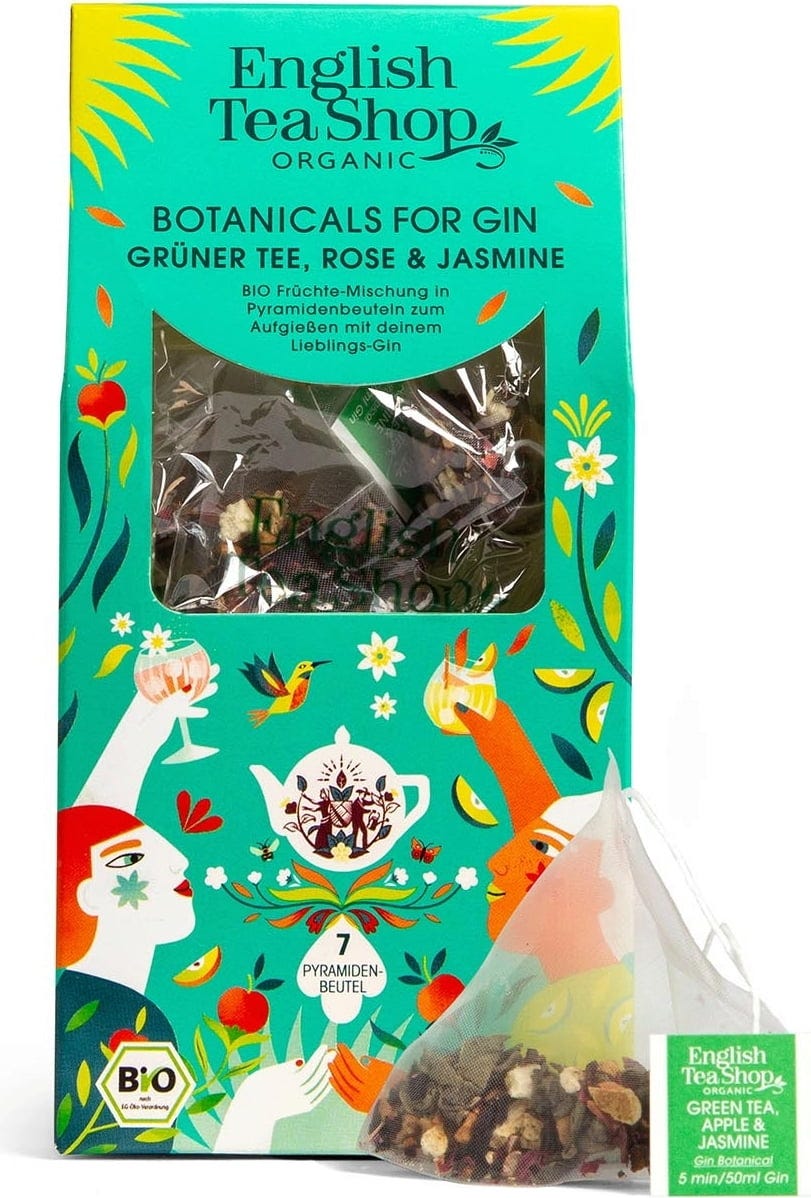 svenska recensioner skriven för English Tea Shop Botanicals for Gin Grönt Te, Ros & Jasmin, Eko