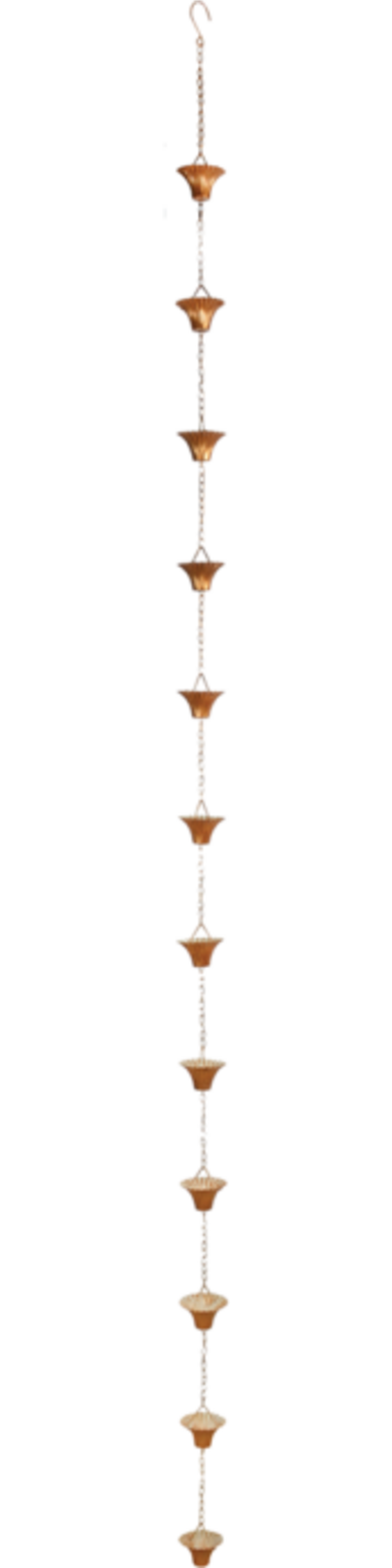 Denna regnvattenskedja kombinerar funktion och form på ett elegant sätt. Den leder regnvattnet från taket med stil och blir samtidigt en dekorativ detalj vid entréer, uteplatser eller balkonger.