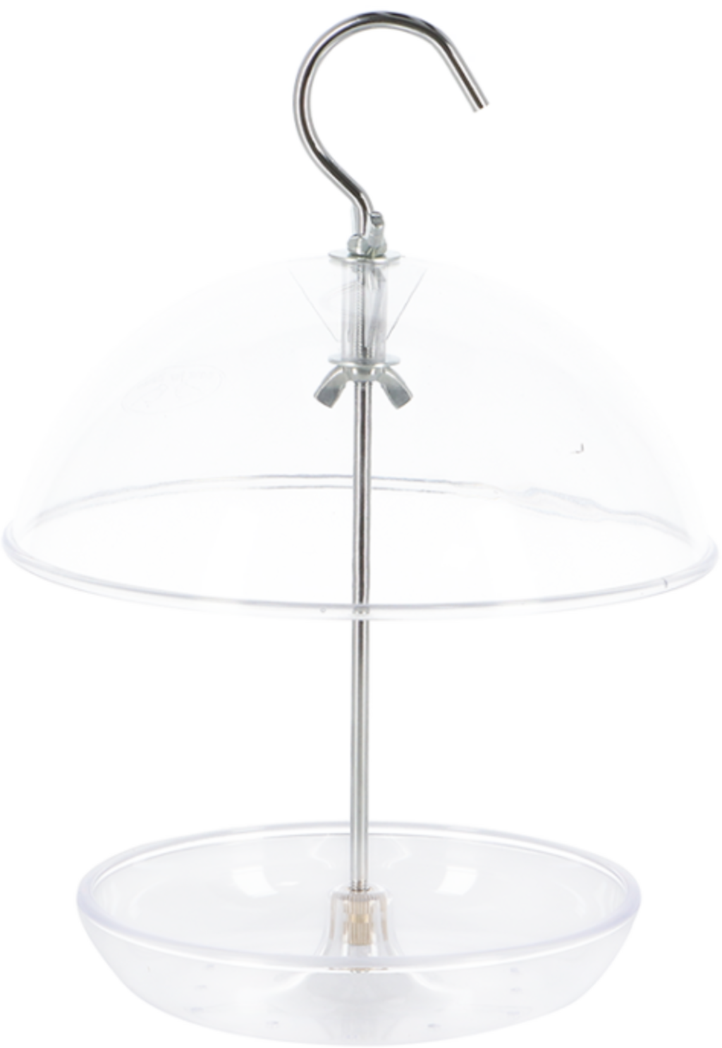Detta praktiska fågelhus skyddar fodret effektivt mot regn tack vare det kupolformade taket. Det transparenta materialet gör det enkelt att betrakta fåglarna medan de äter. Med inbyggd upphängningskrok för flexibel placering i trädgården eller på balkongen.