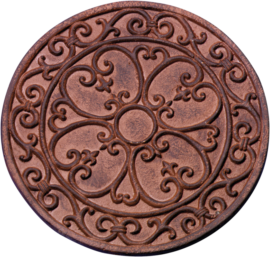 Denna trampplatta imponerar med sitt vackra mönster och sin antika rostbruna finish och tillför denna mycket speciella stil till trädgården och entrén. Tillverkningen av massivt gjutjärn gör dem också extremt robusta och stabila. Detta gör den perfekt som en snygg grund för fågelbad eller som stegplatta.