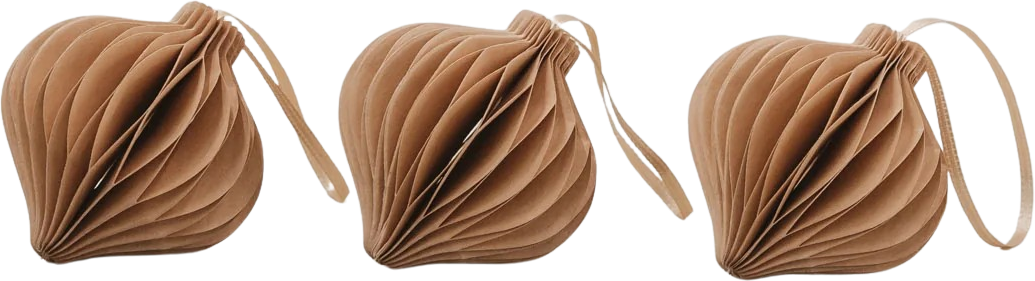 Pappershängarna i 3-pack ger ett naturligt och elegant inslag i julens dekoration. Oavsett om de hängs i granen, på kvistar, i fönstret eller på paket, skapar de dropp- och klockformade dekorationerna i honeycomb-design stilrena accenter.