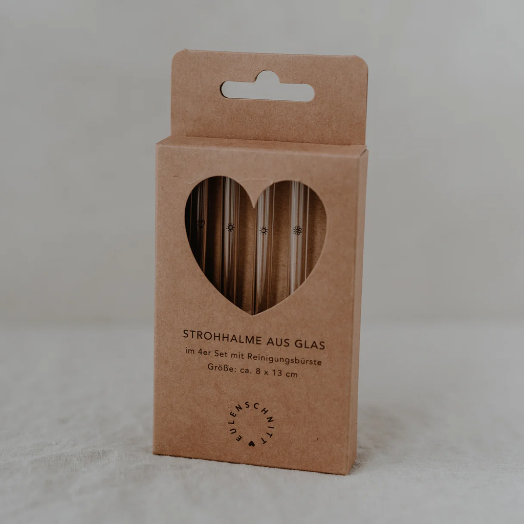 Värmebeständiga sugrör av borosilikatglas med snygga svarta accenter. Sugrören kan rengöras antingen i diskmaskinen eller med den medföljande borsten.