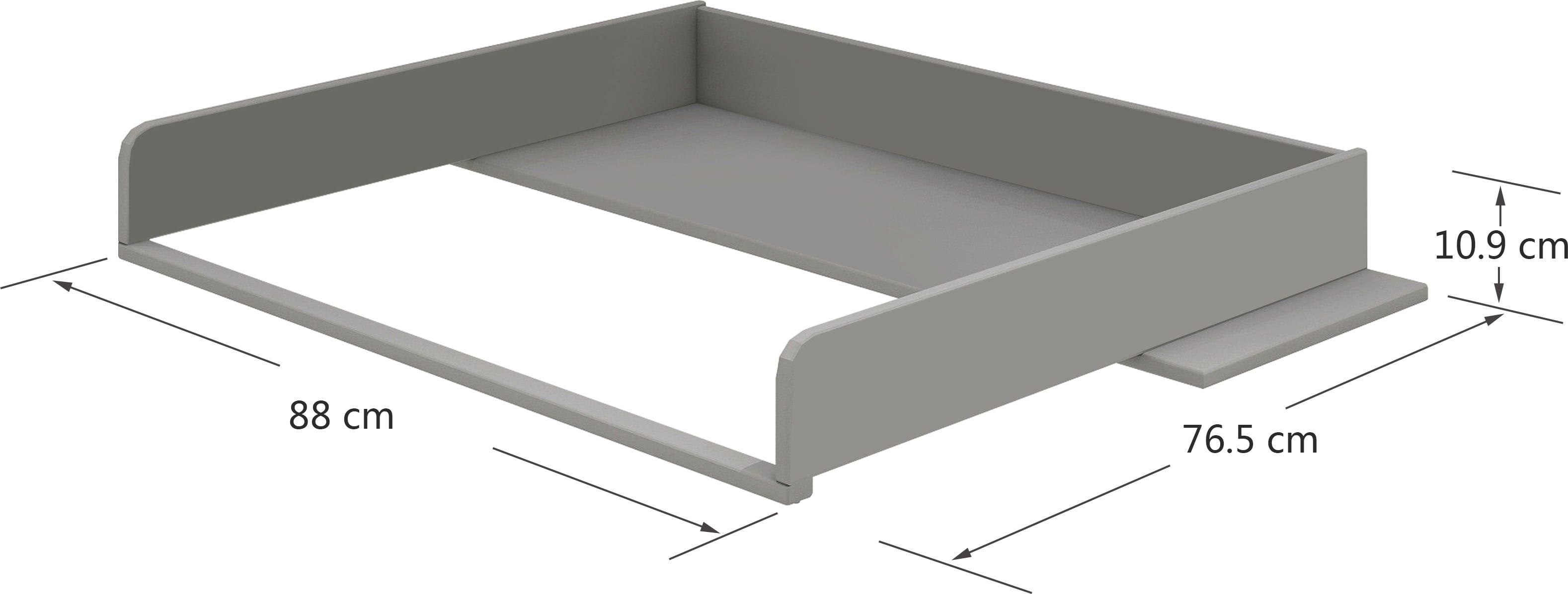 Den här skötbordet av robust och lackerad MDF kompletterar den tidlösa LUNA-kommoden och förvandlar den till ett bekvämt skötbord under tiden du byter blöja. Den kan monteras med några få steg, så att toppen enkelt kan tas bort igen senare. Det fria utrymmet bakom skötaren kan användas smart och dekorativt med matchande hyllor på båda sidor. Tvätt, blöjor & liknande finns alltid nära till hands.