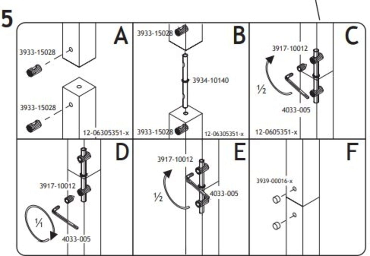 Denna uppsättning skruvar kan ses på monteringsanvisningen i figur 5.