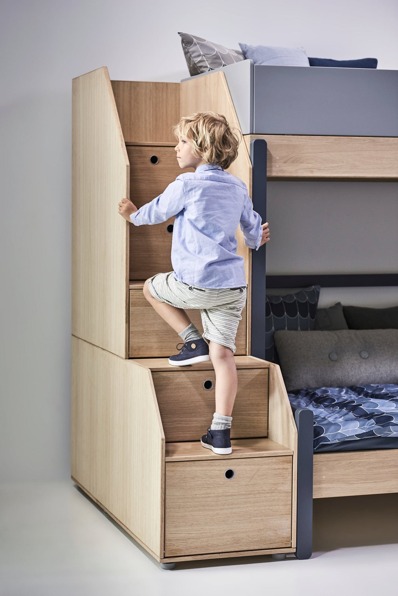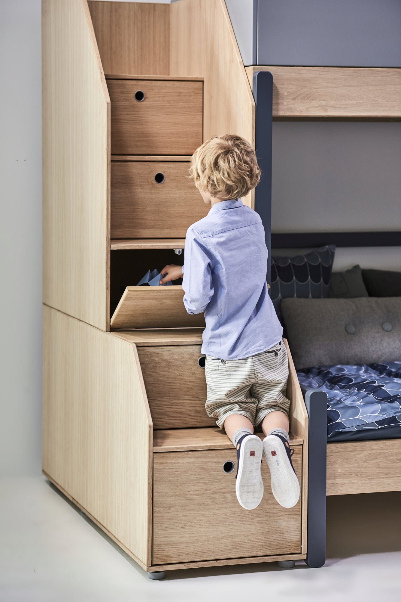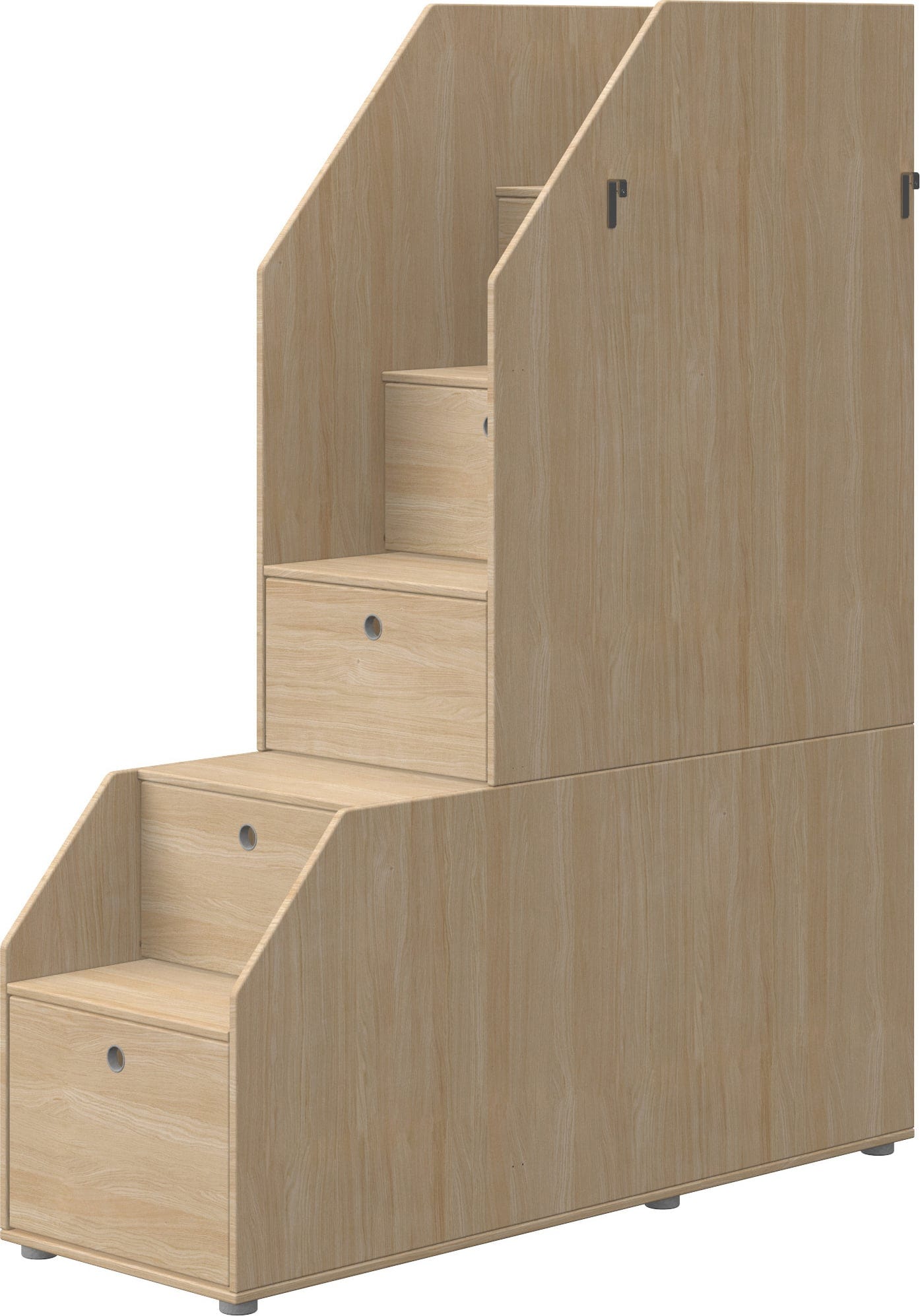 Trappsteg för Popsicle loftsäng från Flexa. Trappsteg med förvaringsutrymme är idealiska för att förvara saker som ska vara utom synhåll men alltid inom räckhåll. Trappstegen är tillverkade av MDF-faner.