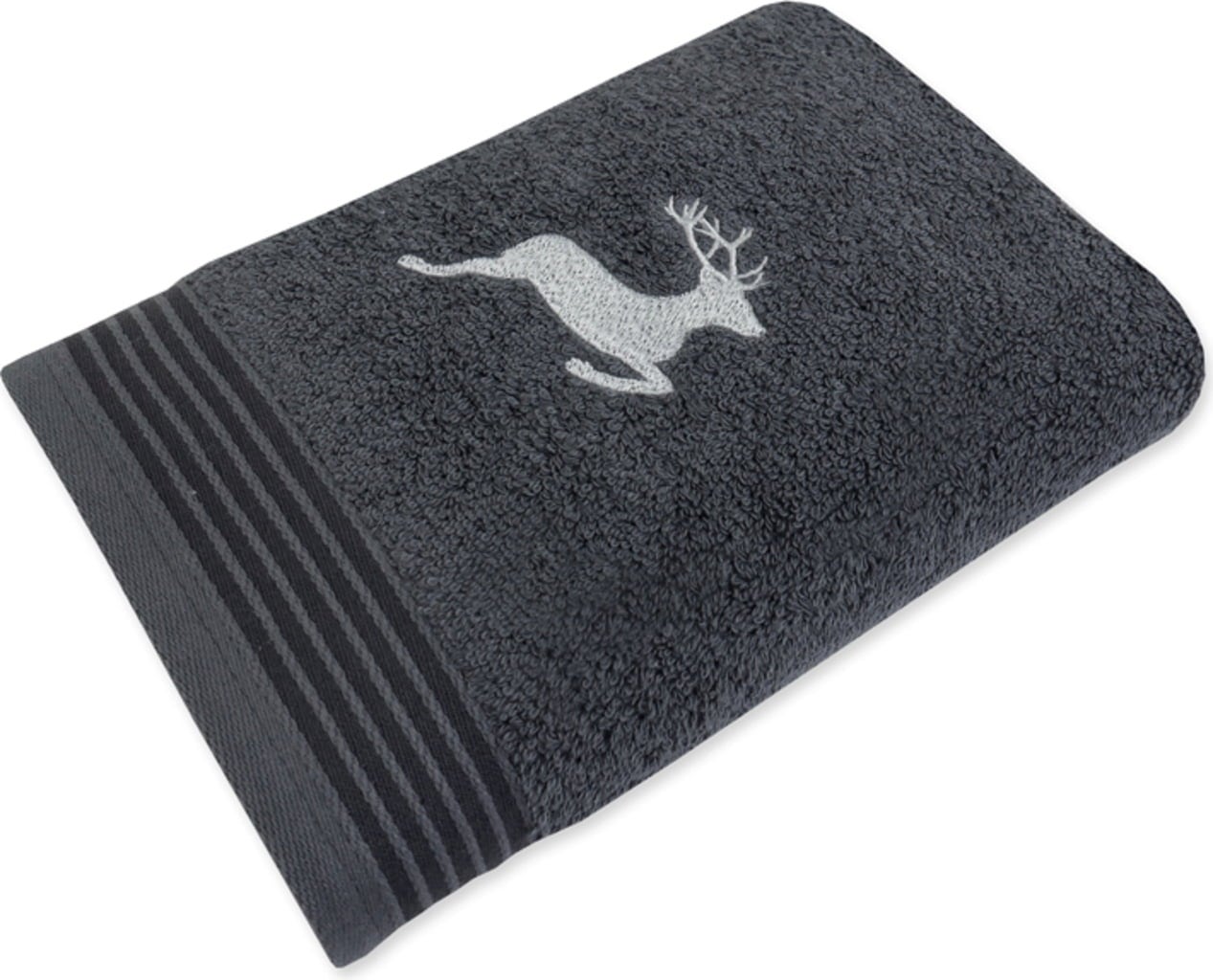 Fluffig frottéhandduk med broderade rådjur