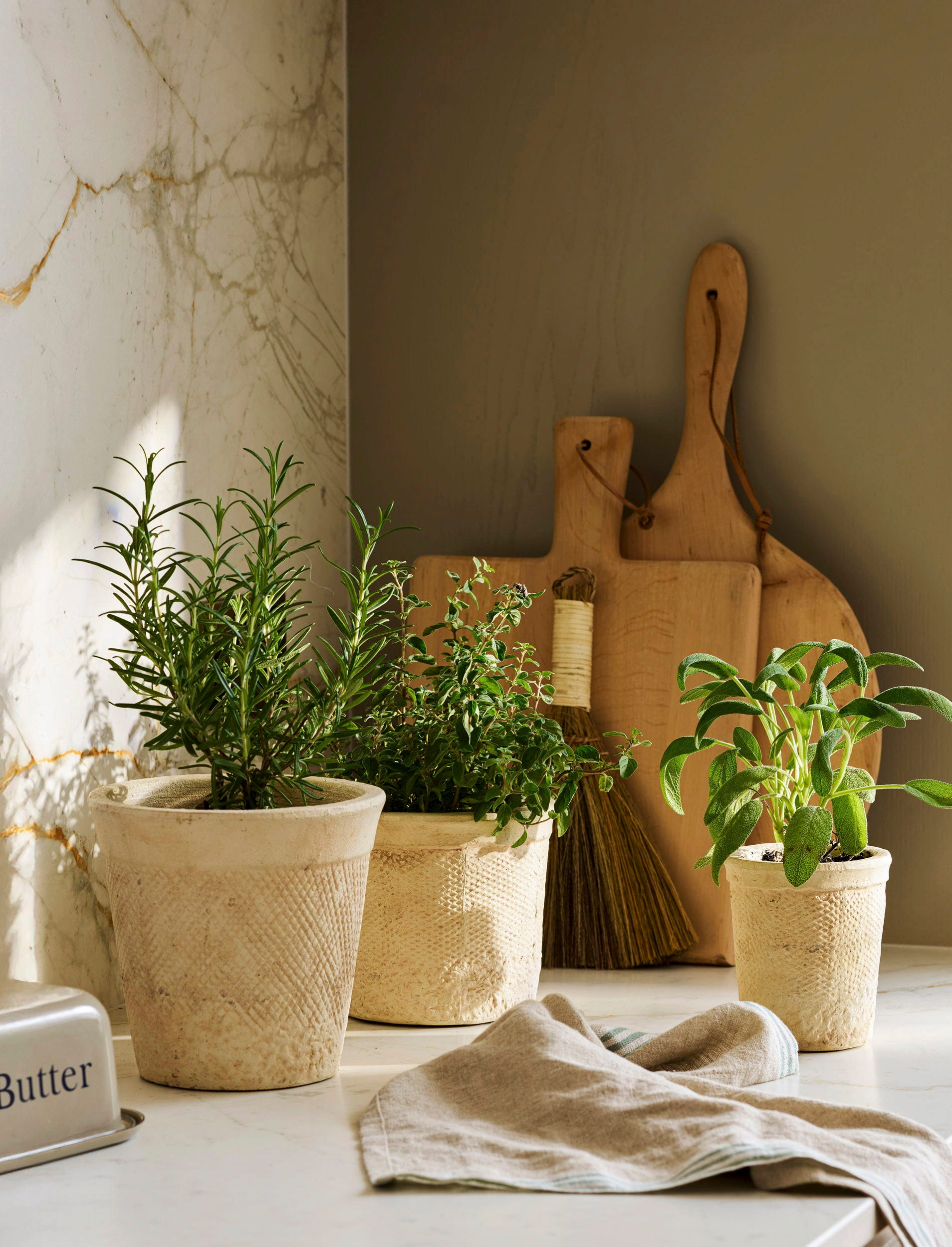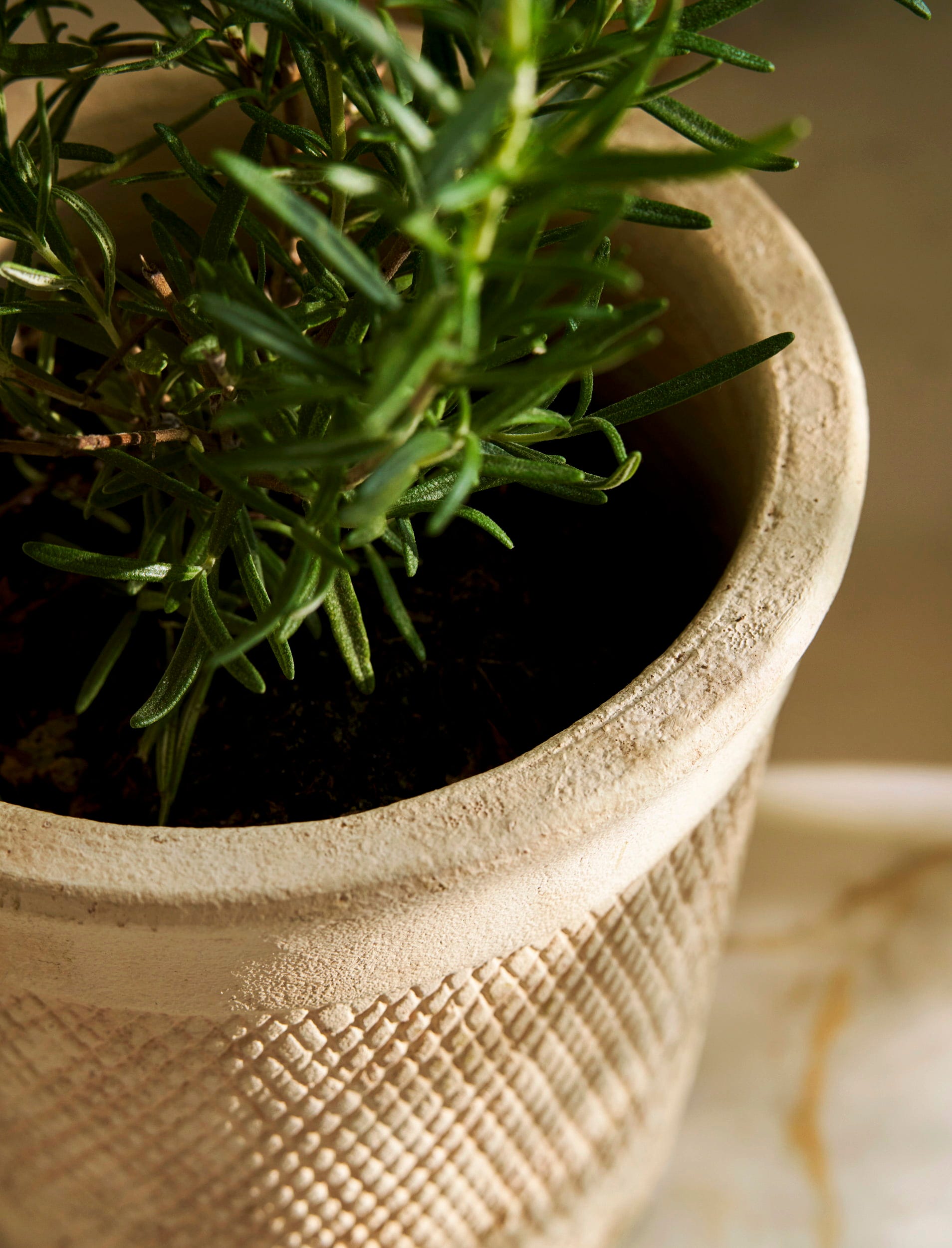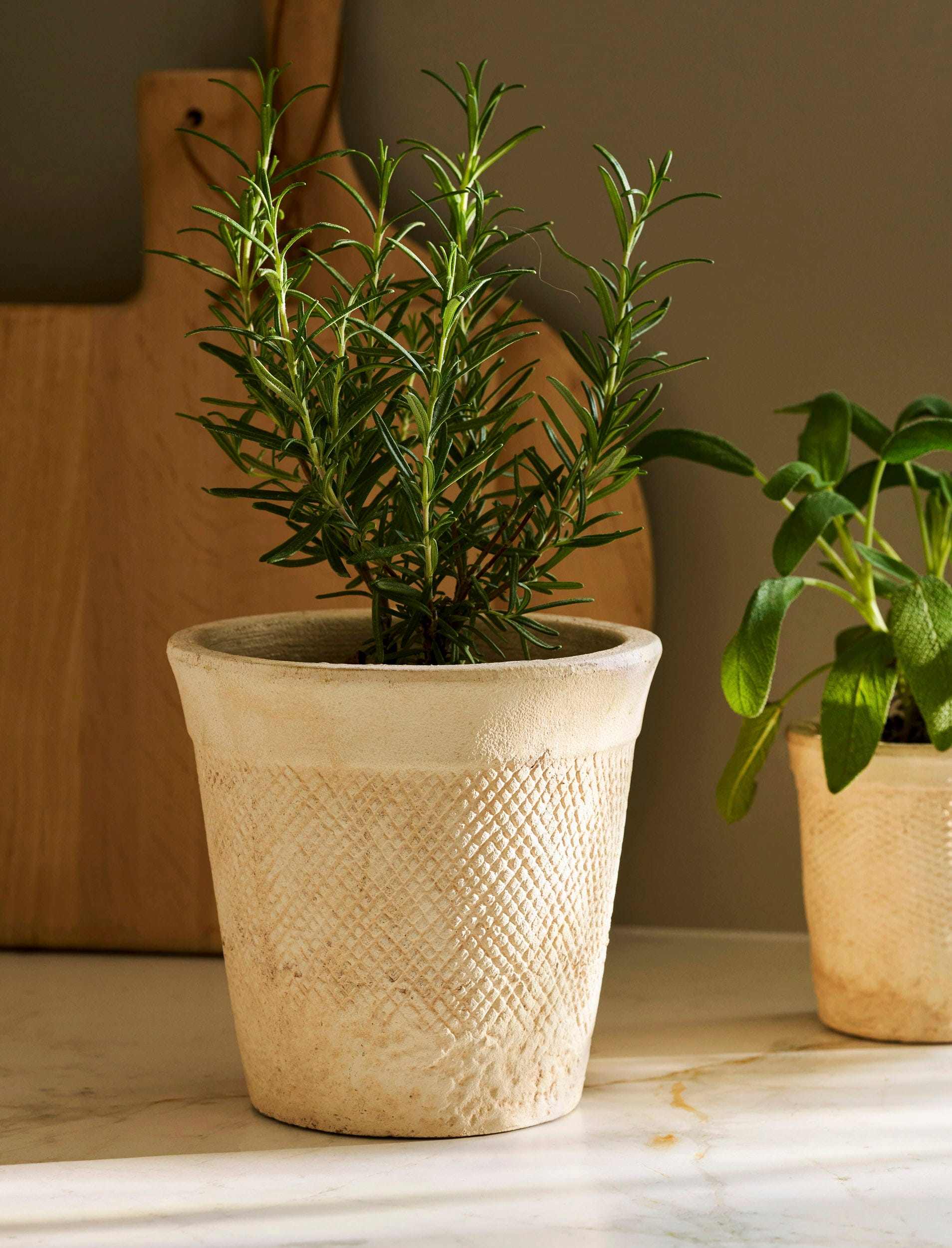 Den diskret strukturerade stenytan ger denna blomkruka ett tilltalande utseende, medan den vattentäta insidan säkerställer att dina växter trivs. Perfekt för små örter, suckulenter eller miniplanteringar förvandlar denna kruka vardaglig grönska till en stilfull inredningsdetalj.
