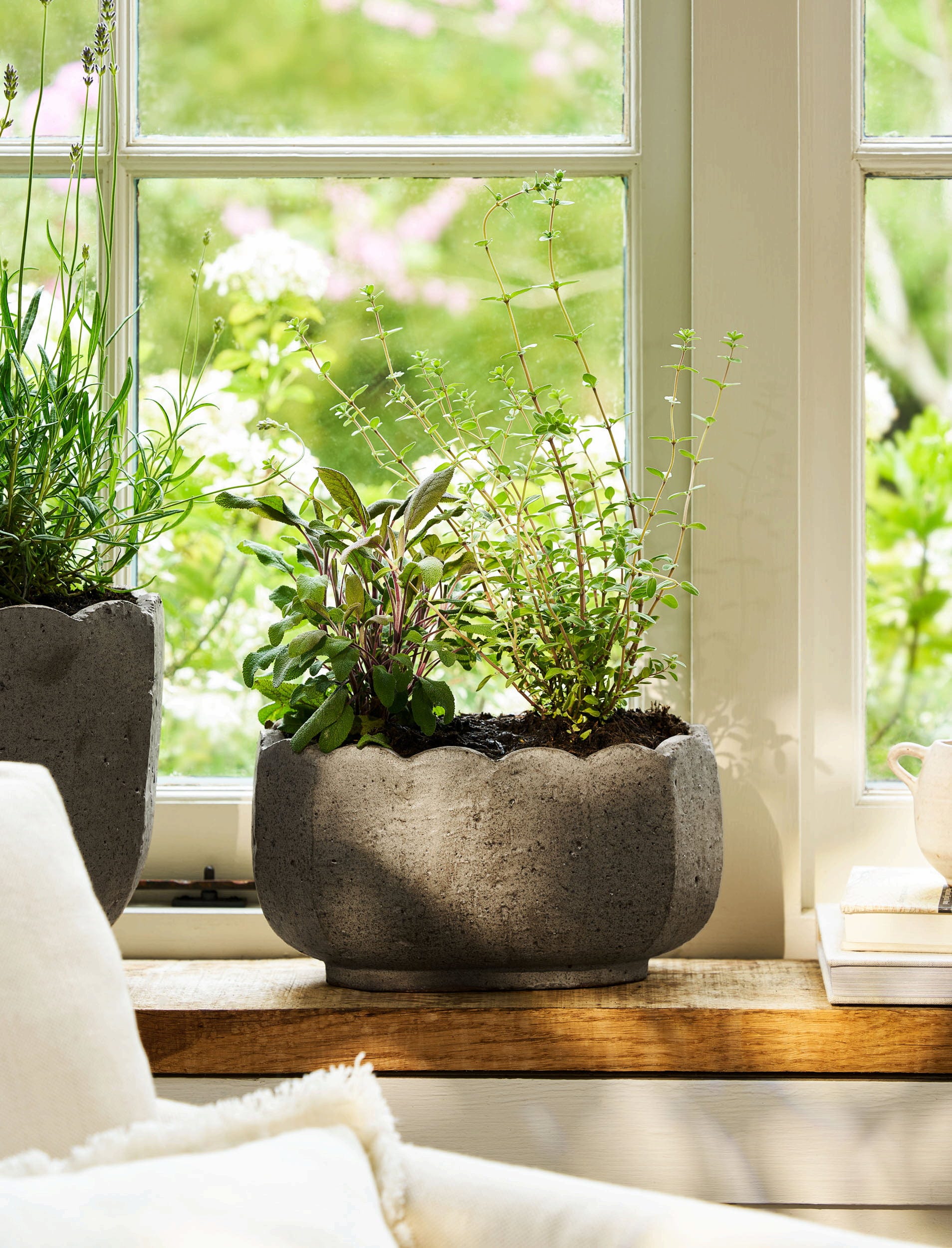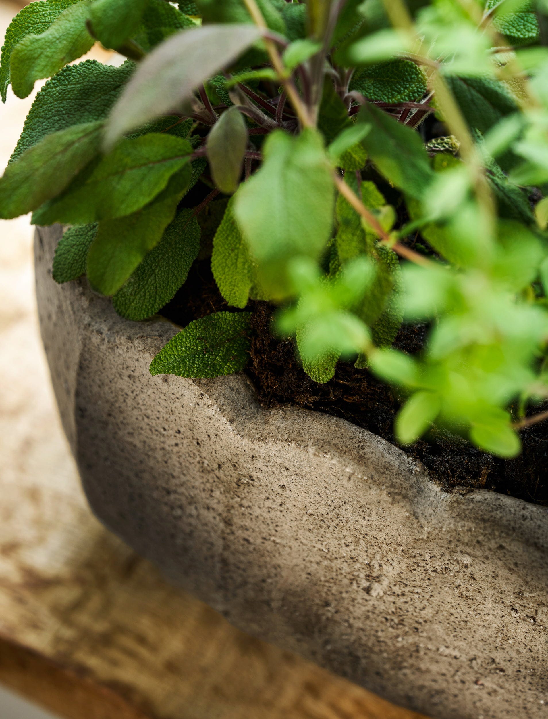 Denna ytterkruka smälter in perfekt i olika inredningsstilar, från lantligt till industriellt, tack vare sin moderna cementlook. Inspirerad av mjuka former från en snäcka ger den en behaglig känsla och lyfter fram dina krukväxter på ett vackert sätt.
