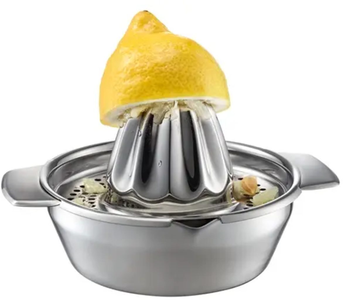 Oavsett om du ska pressa lime, apelsin eller andra citrusfrukter gör citruspressen LEMON från GEFU det enkelt. Det smarta är att kärnor och fruktkött stannar kvar i den övre silen, det som hamnar i behållaren under är bara ren, klar juice.