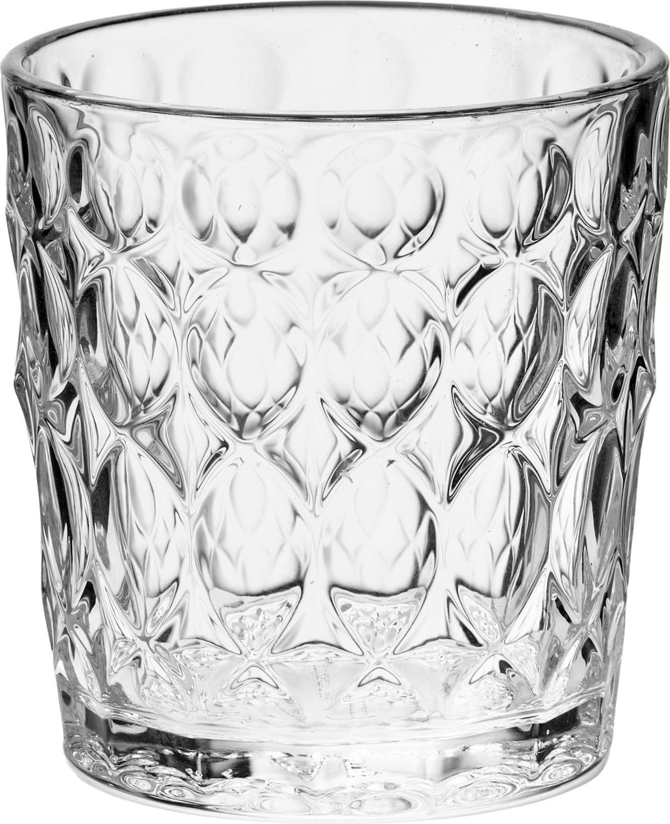 Detta generöst tilltagna dricksglas förvandlar varje dryck till ett speciellt tillfälle. Med en volym på 360 ml är det perfekt för vatten, juice eller läsk. Den distinkta ytstrukturen ser inte bara elegant ut utan säkerställer också ett bekvämt grepp.