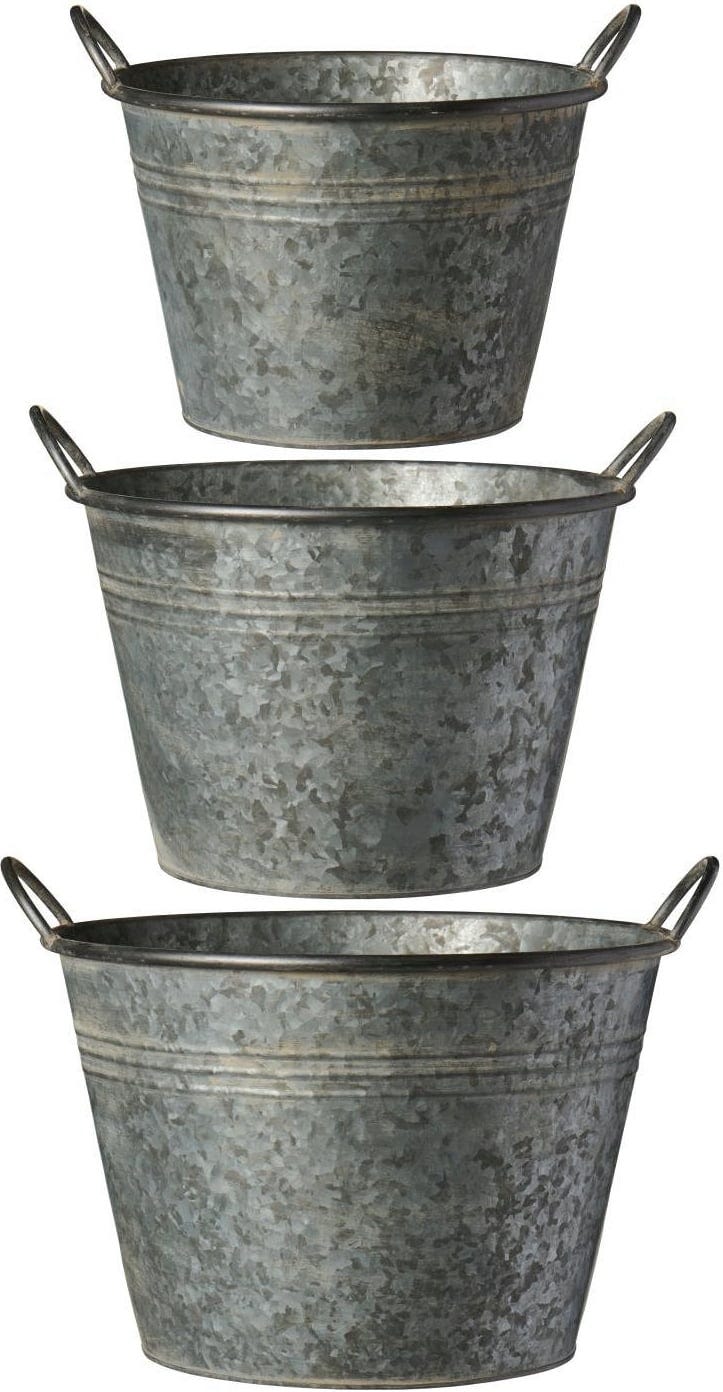 Detta set med 3 planteringskrukor i olika storlekar imponerar med sin råa industrial-design och tillför en rustik charm till din trädgård. Perfekt för stilfulla växtarrangemang och för att lyfta fram dina favoritväxter.