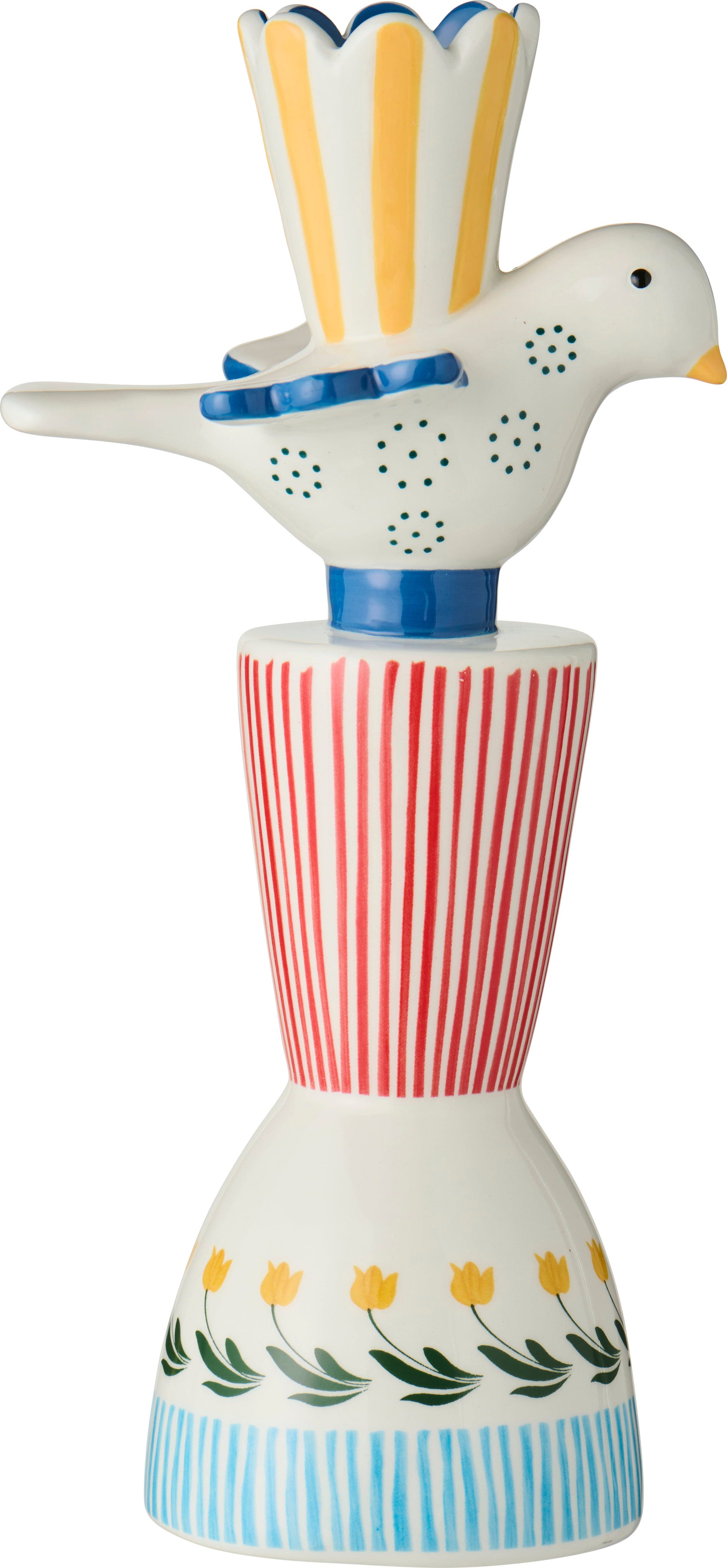 Denna färgstarka ljushållare imponerar med sin lekfullt charmiga design och blir ett riktigt blickfång på sideboards och bord.