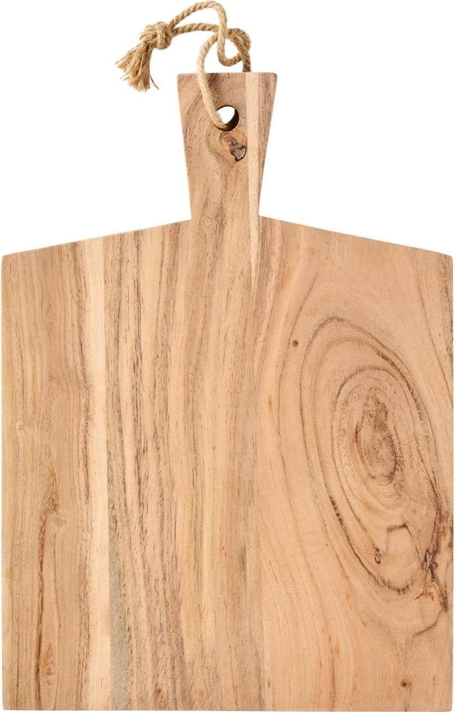Denna högkvalitativa skärbräda av akaciaträ imponerar med sin naturliga karaktär och robusta kvalitet. Den är inte bara perfekt för att skära olika ingredienser, utan är också ett elegant sätt att servera hemlagade delikatesser.