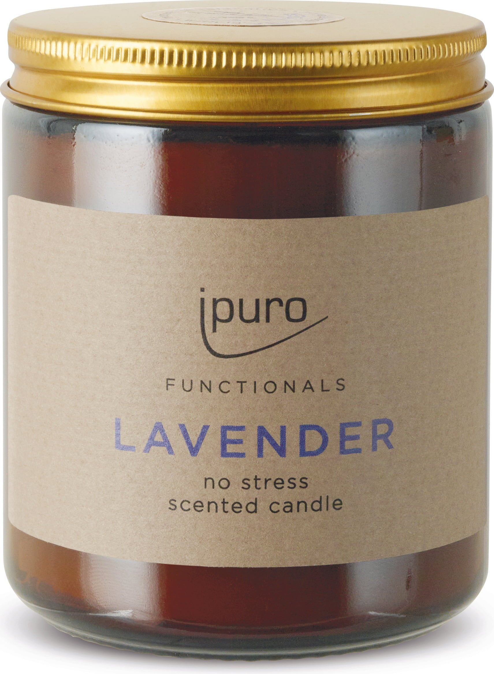 Doftljuset Functionals Lavender från ipuro utstrålar en aromatisk, örtliknande lavendeldoft. Blommiga och fruktiga aromer, tillsammans med toner av vanilj och mysk, fulländar doftupplevelsen.
